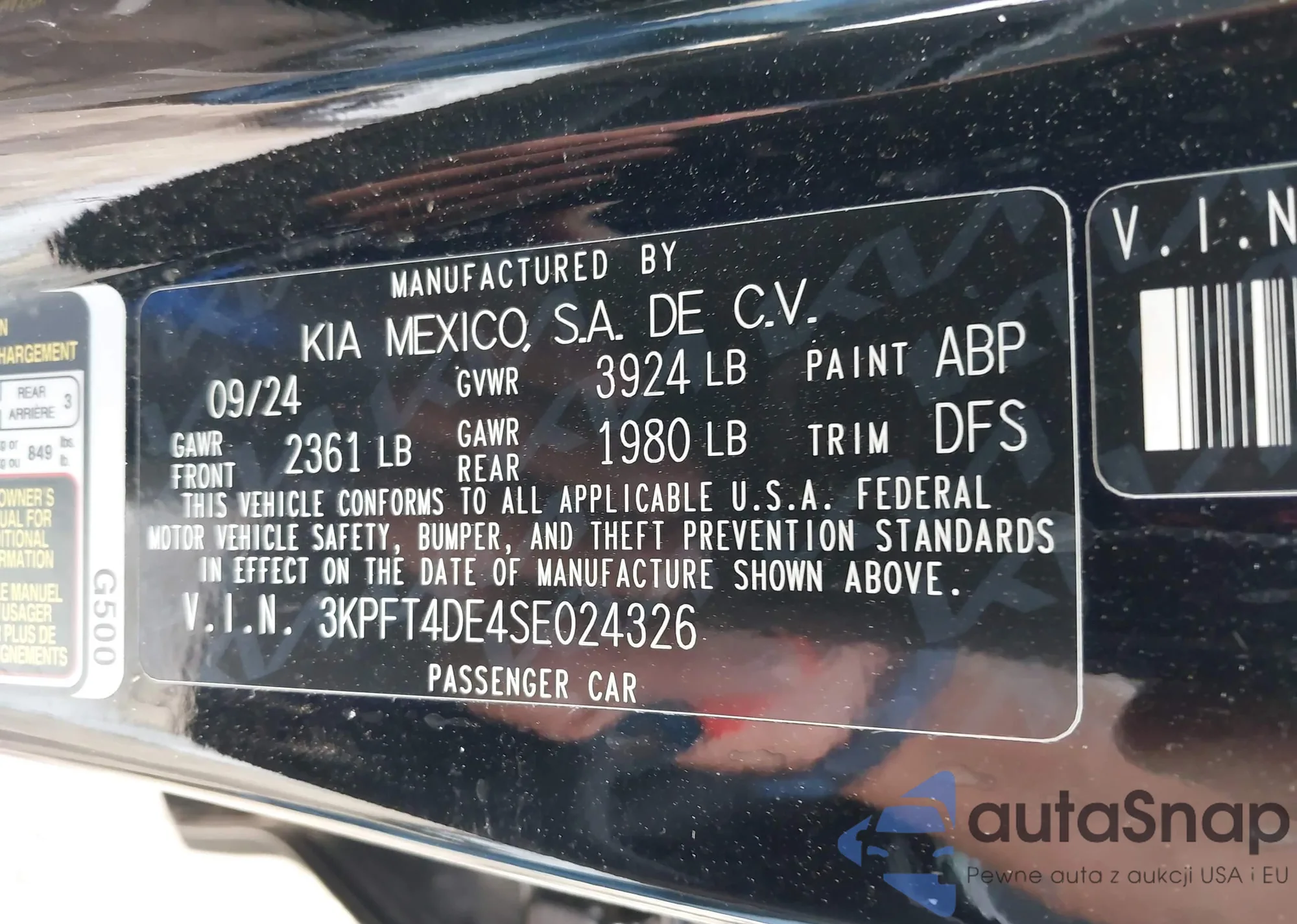 VIN: 3KPFT4DE4SE024326