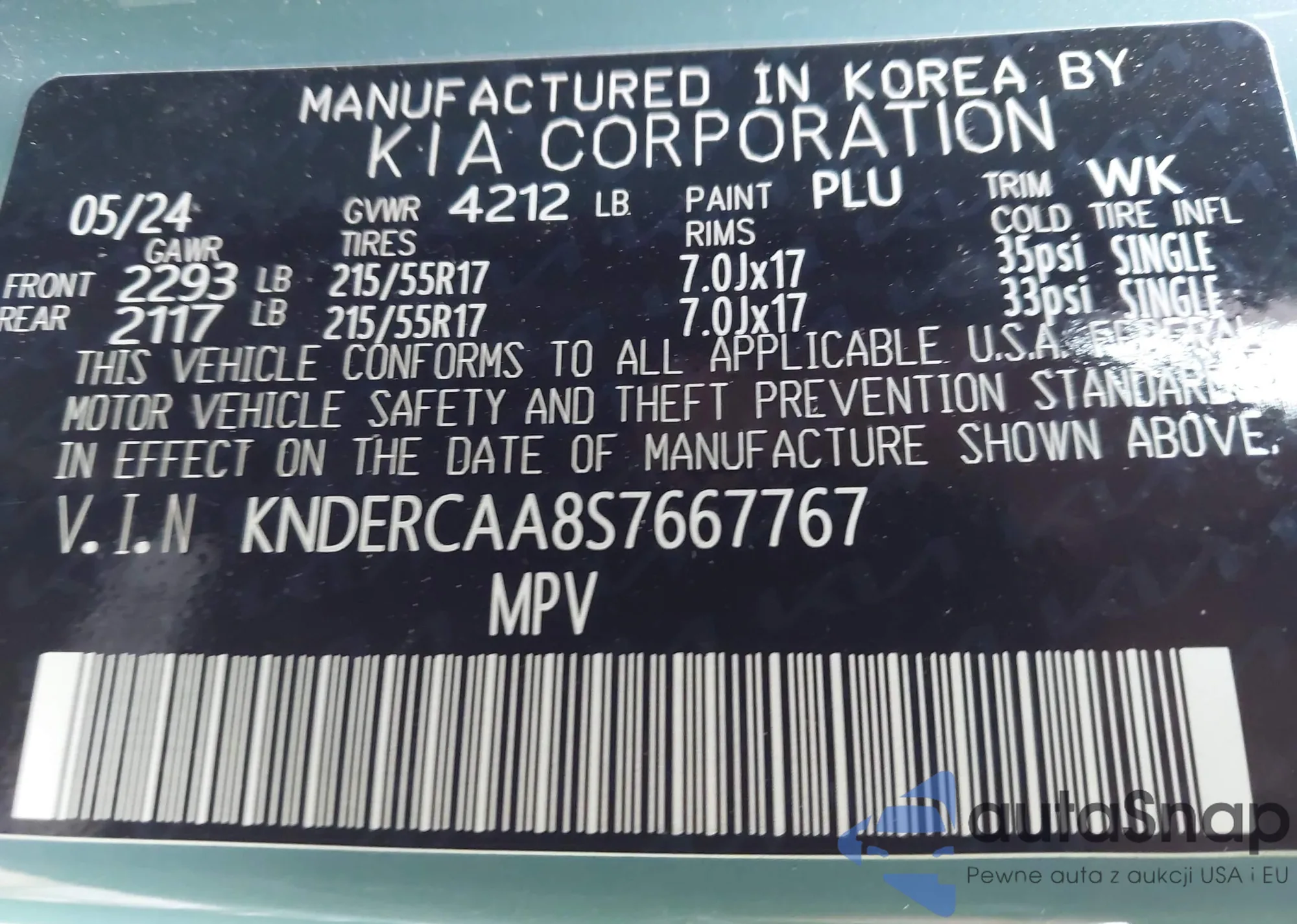 • VIN: KNDERCAA8S7667767