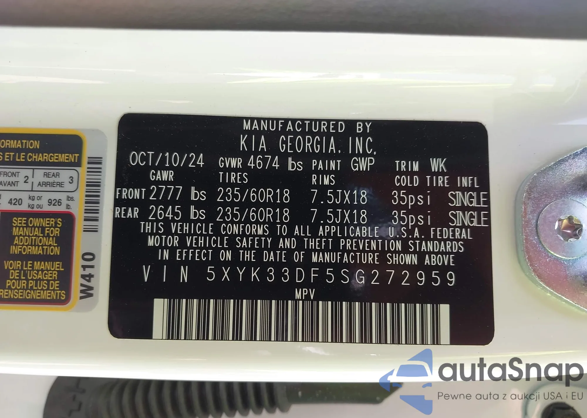 VIN: 5XYK33DF5SG272959