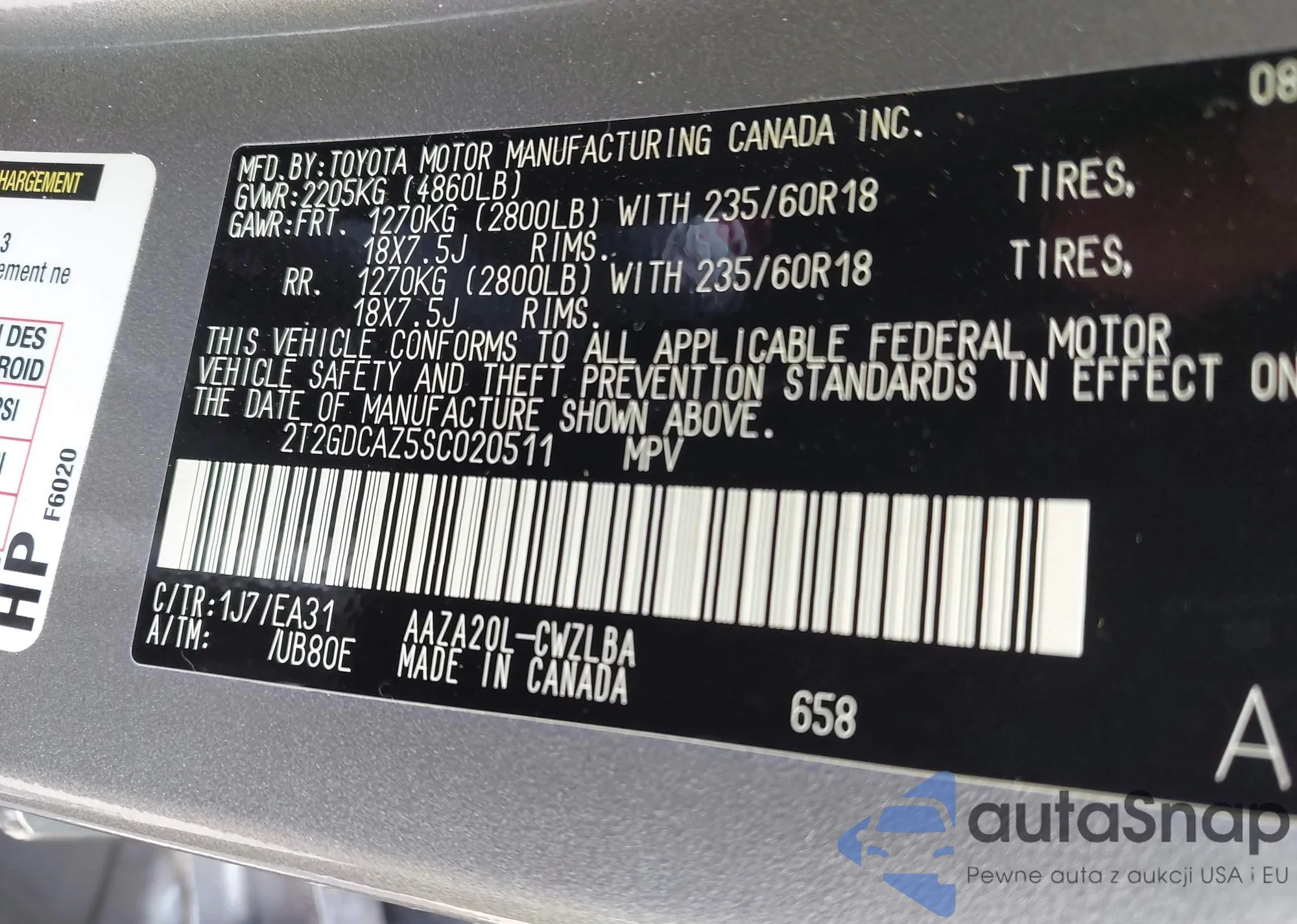 VIN: 2T2GDCAZ5SC020511