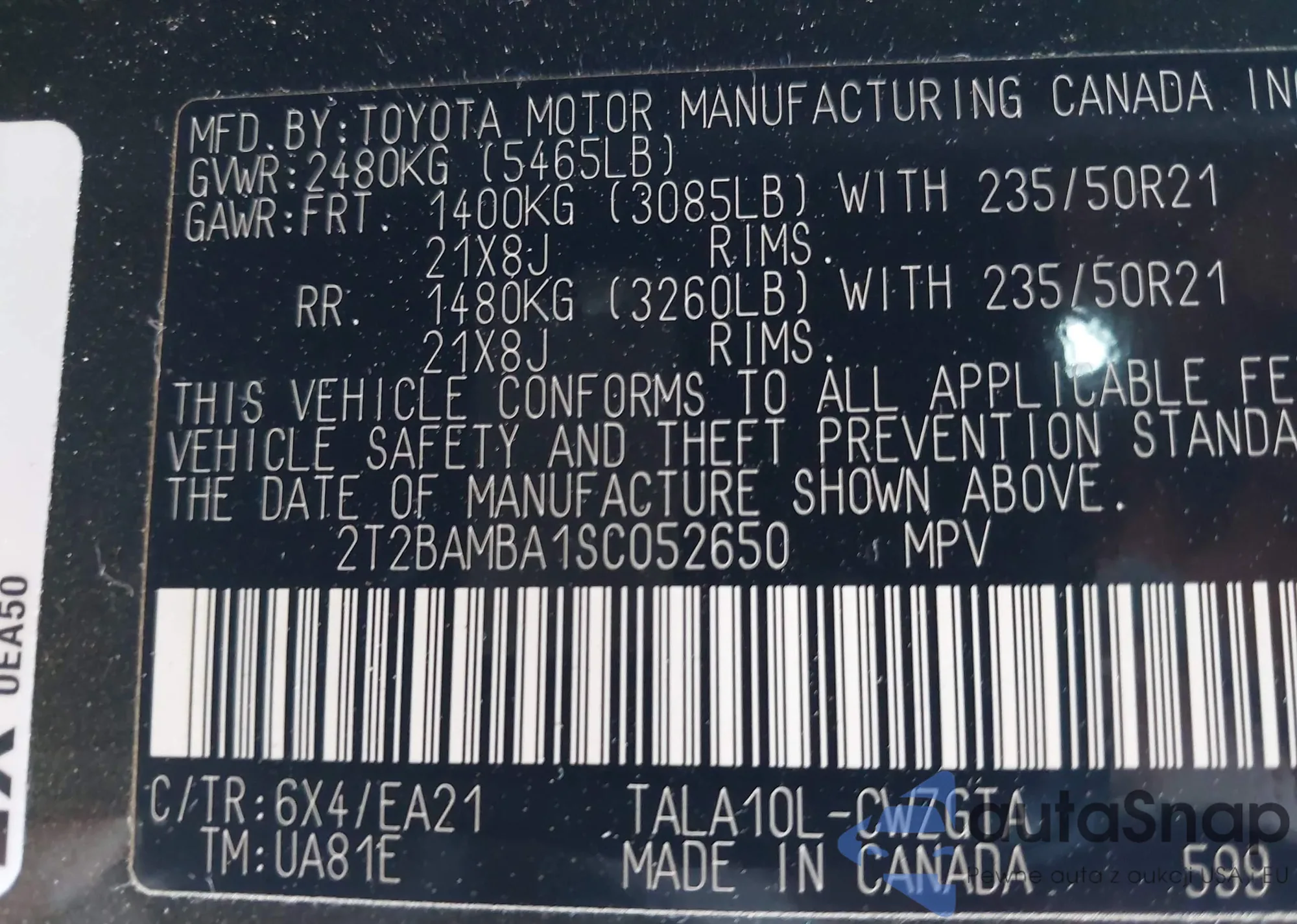 2T2BAMBA1SC052650 IAAI