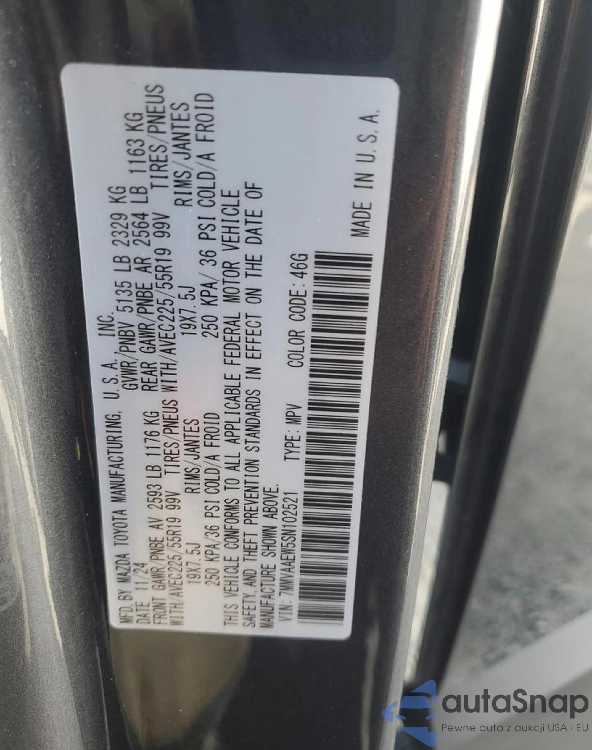 VIN: 7MMVAAEW5SN102521