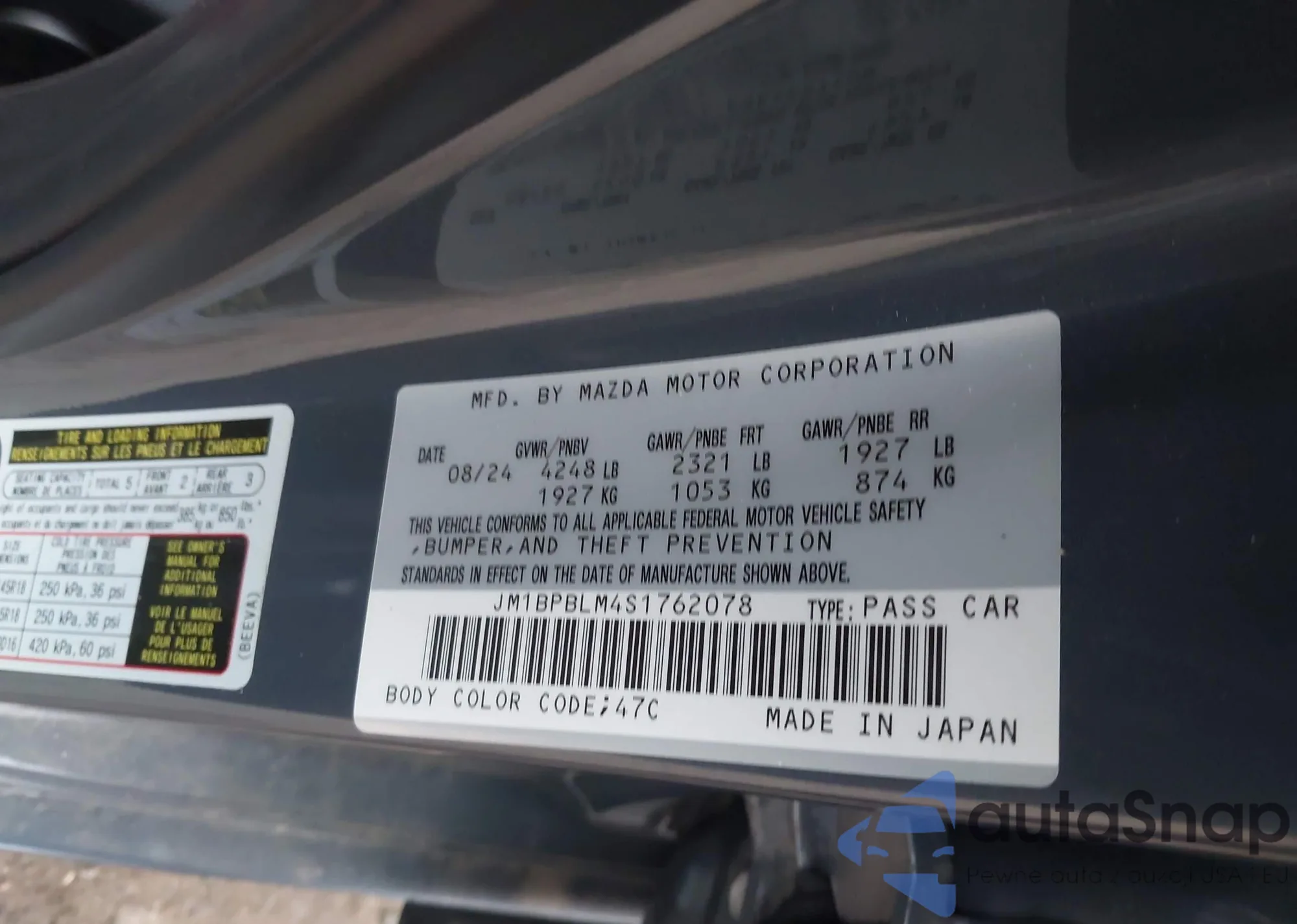 The car Mazda 3 2025 (VIN JM1BPBLM4S1762078) has not been auctioned before. The documents are clean, and the mileage matches or is below the market average. Sold by an insurance company – we recommend purchase. Delivery to the port will take approx. 6–8 weeks.