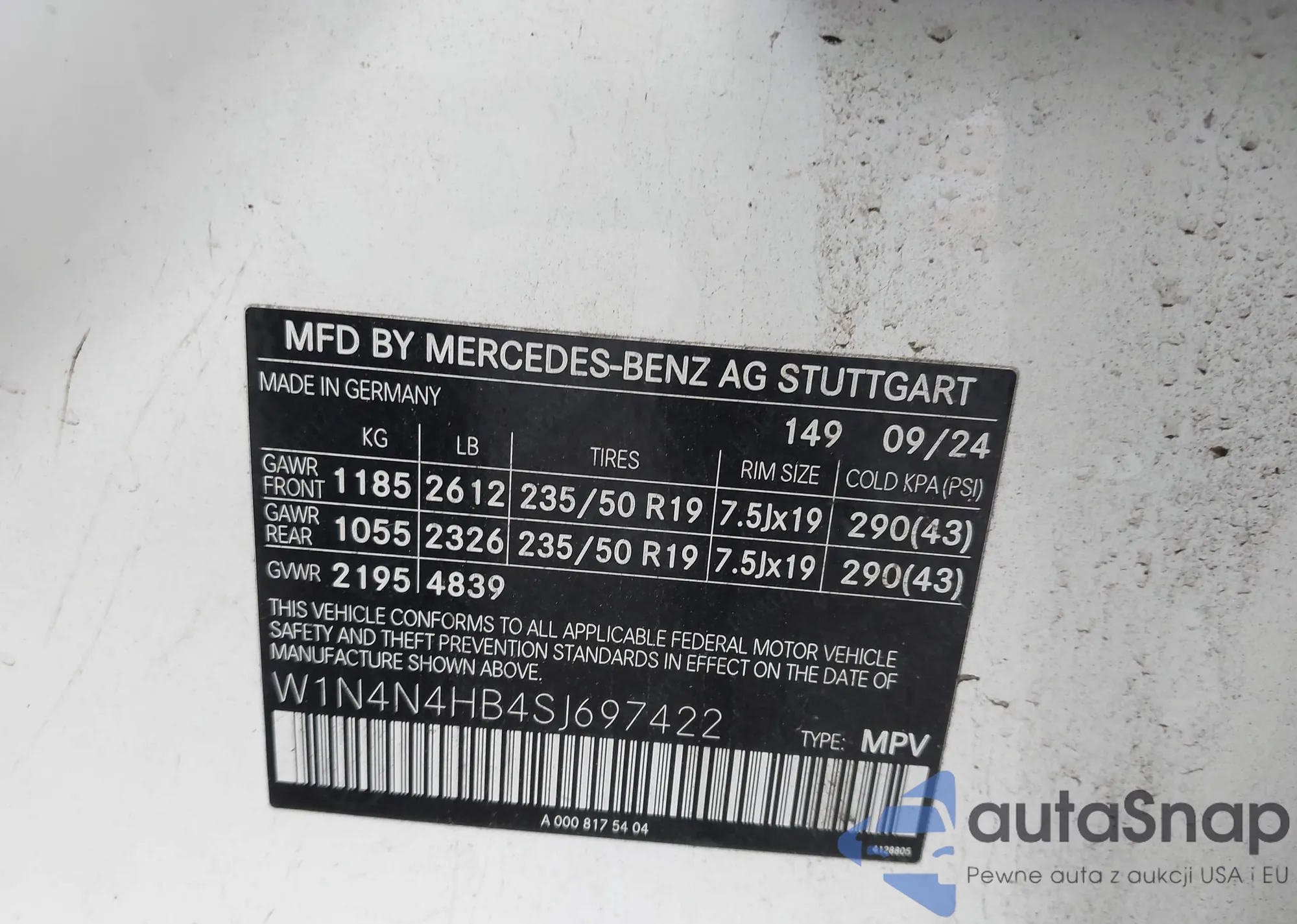 VIN: W1N4N4HB4SJ697422