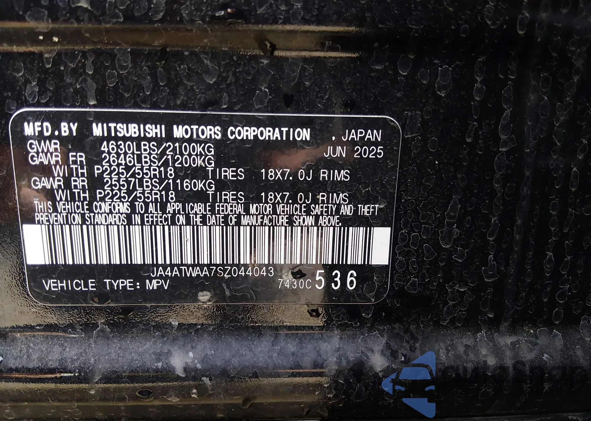 • VIN: JA4ATWAA7SZ044043