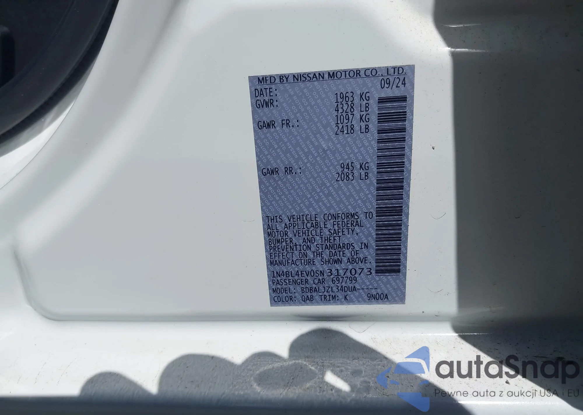 VIN: 1N4BL4EV0SN317073
