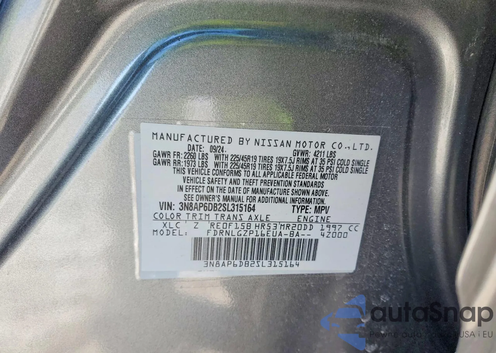 The car Nissan Kicks 2025 (VIN 3N8AP6DB2SL315164) has not been auctioned before. The documents are clean, and the mileage matches or is below the market average. Sold by an insurance company – we recommend purchase. Delivery to the port will take approx. 6–8 weeks.