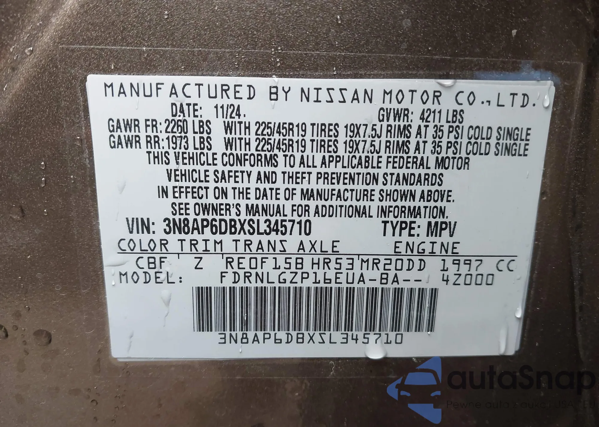 VIN: 3N8AP6DBXSL345710