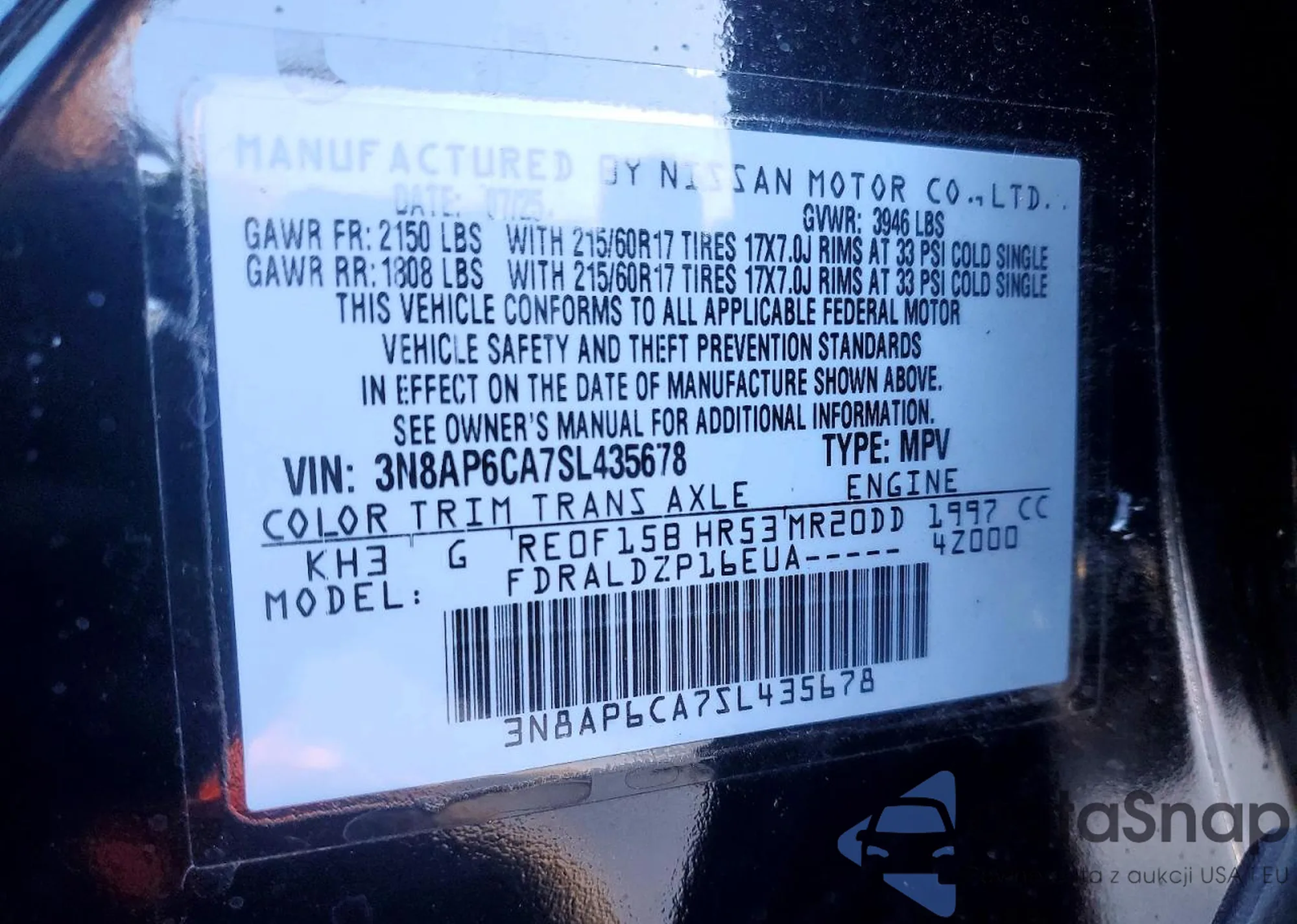 The car Nissan Kicks 2025 (VIN 3N8AP6CA7SL435678) is sold by an unverified seller. We recommend checking the Carfax report and confirming registration possibilities before purchase.