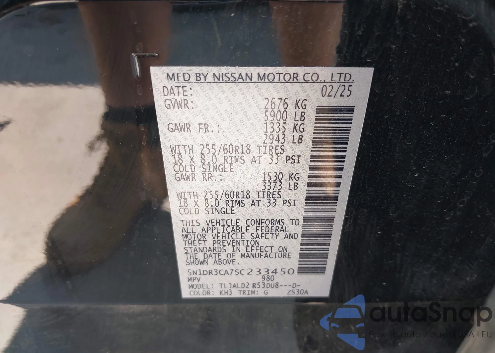 VIN: 5N1DR3CA7SC233450