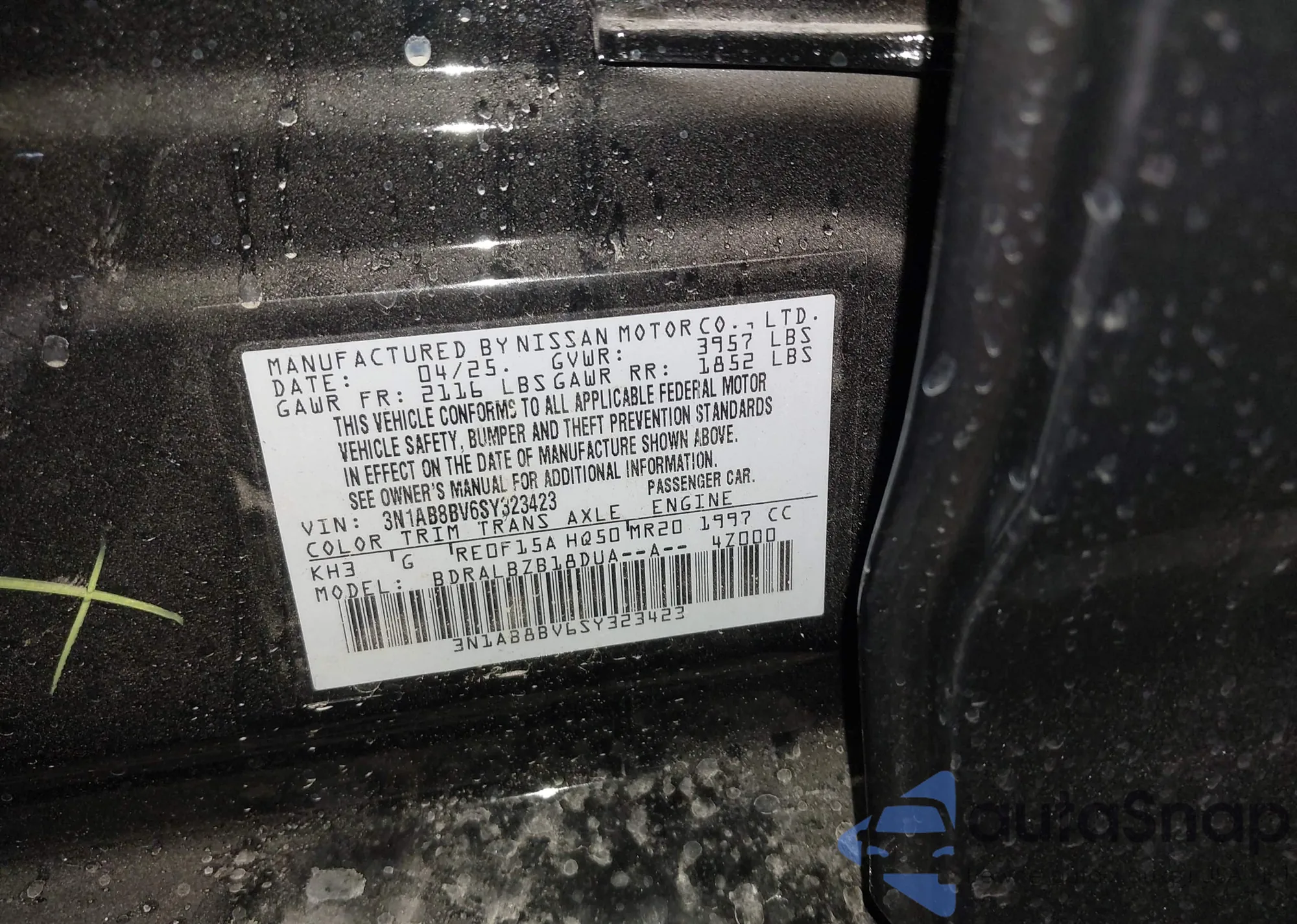 • VIN: 3N1AB8BV6SY323423
