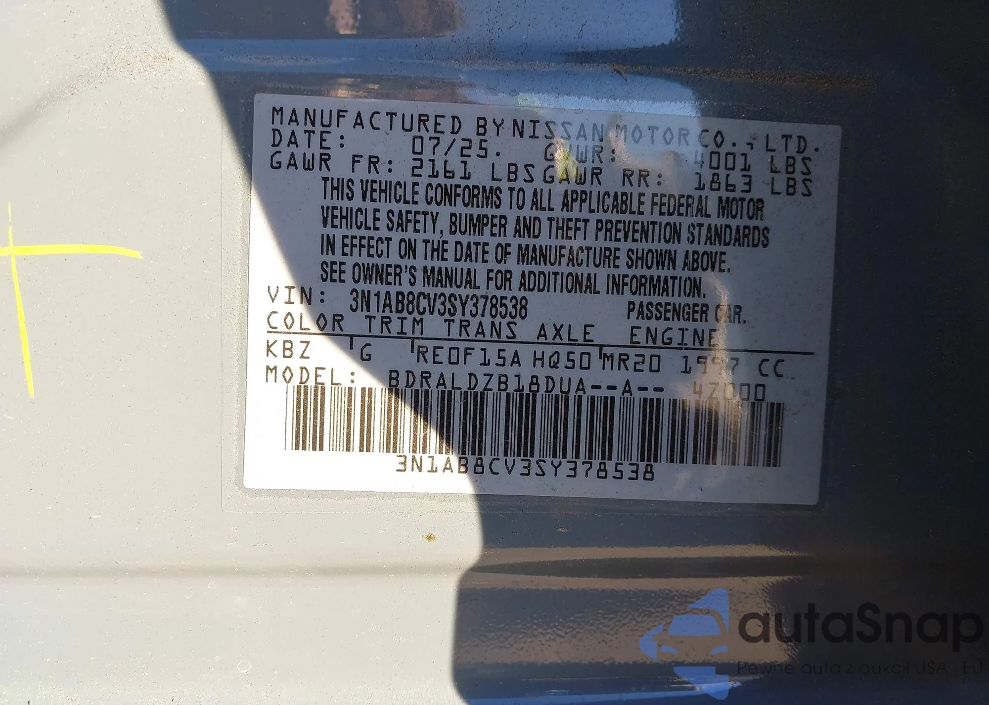 • VIN: 3N1AB8CV3SY378538