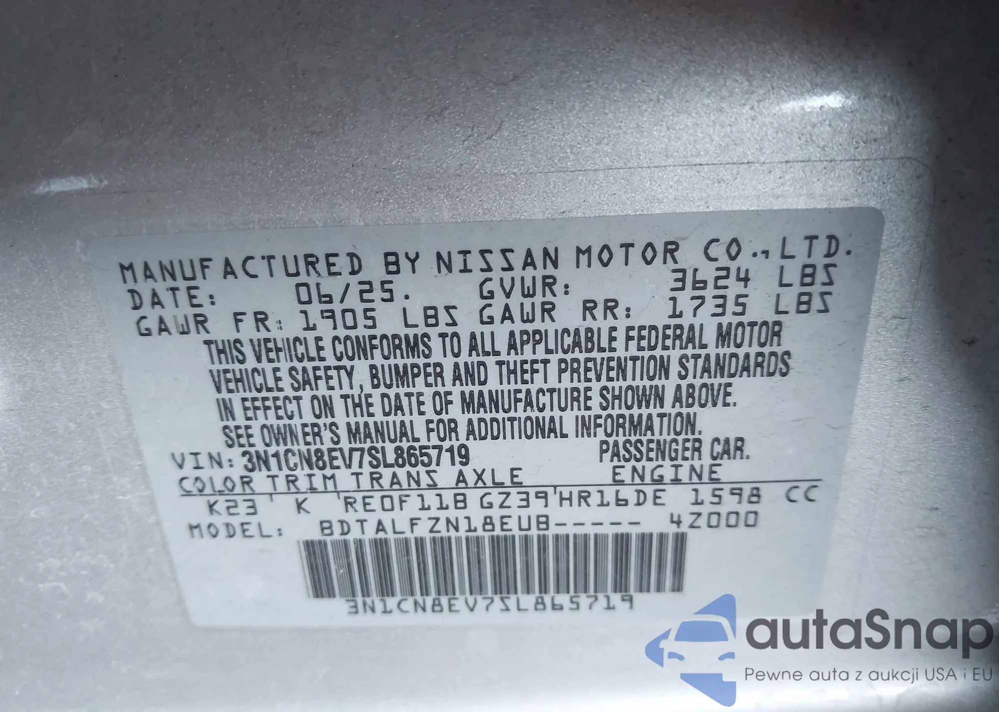 VIN: 3N1CN8EV7SL865719