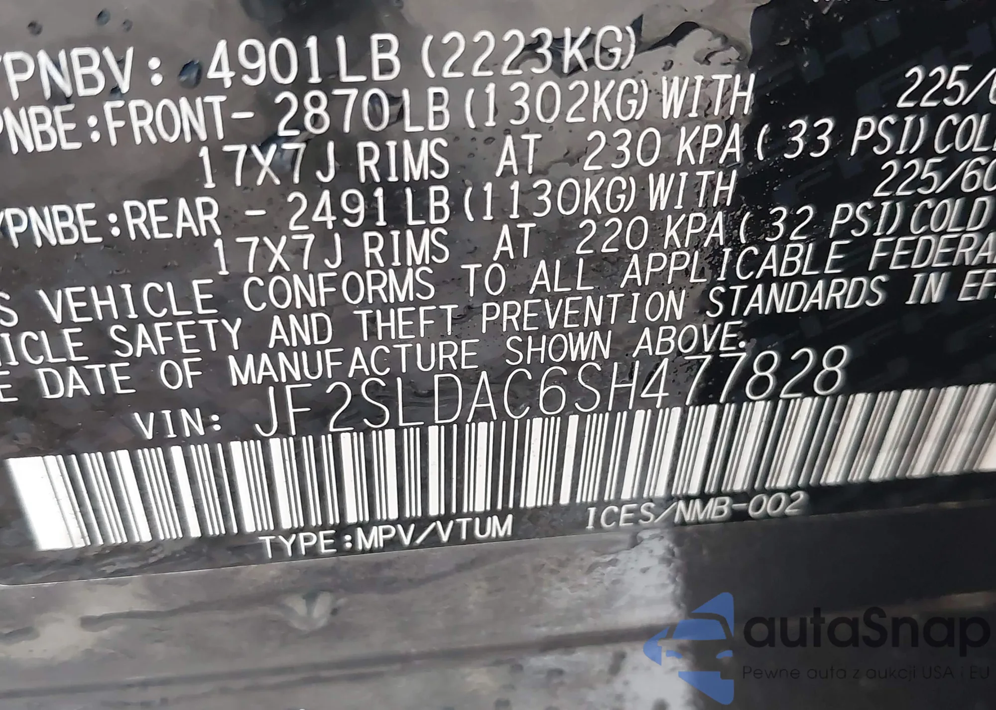 VIN: JF2SLDAC6SH477828