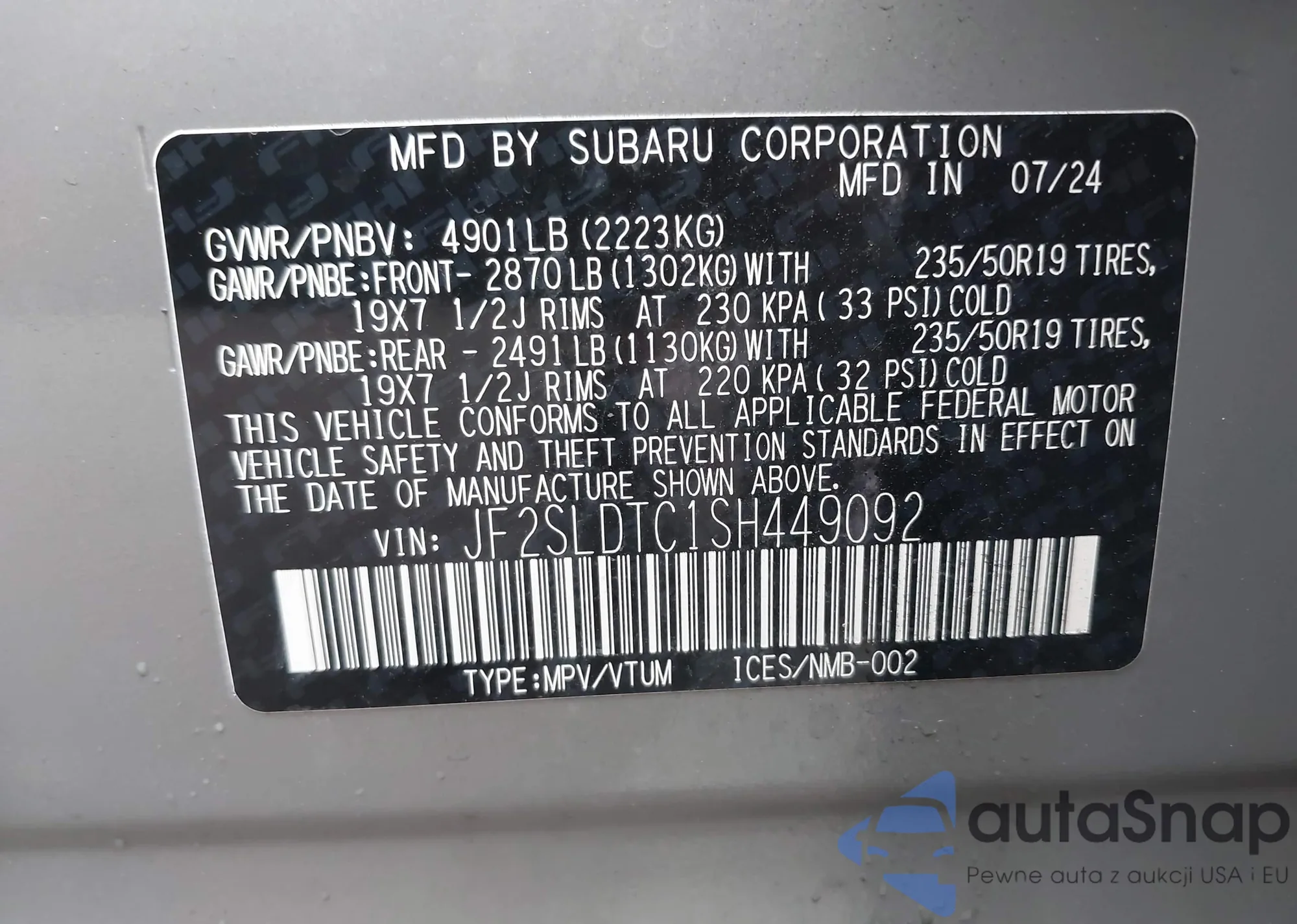 VIN: JF2SLDTC1SH449092