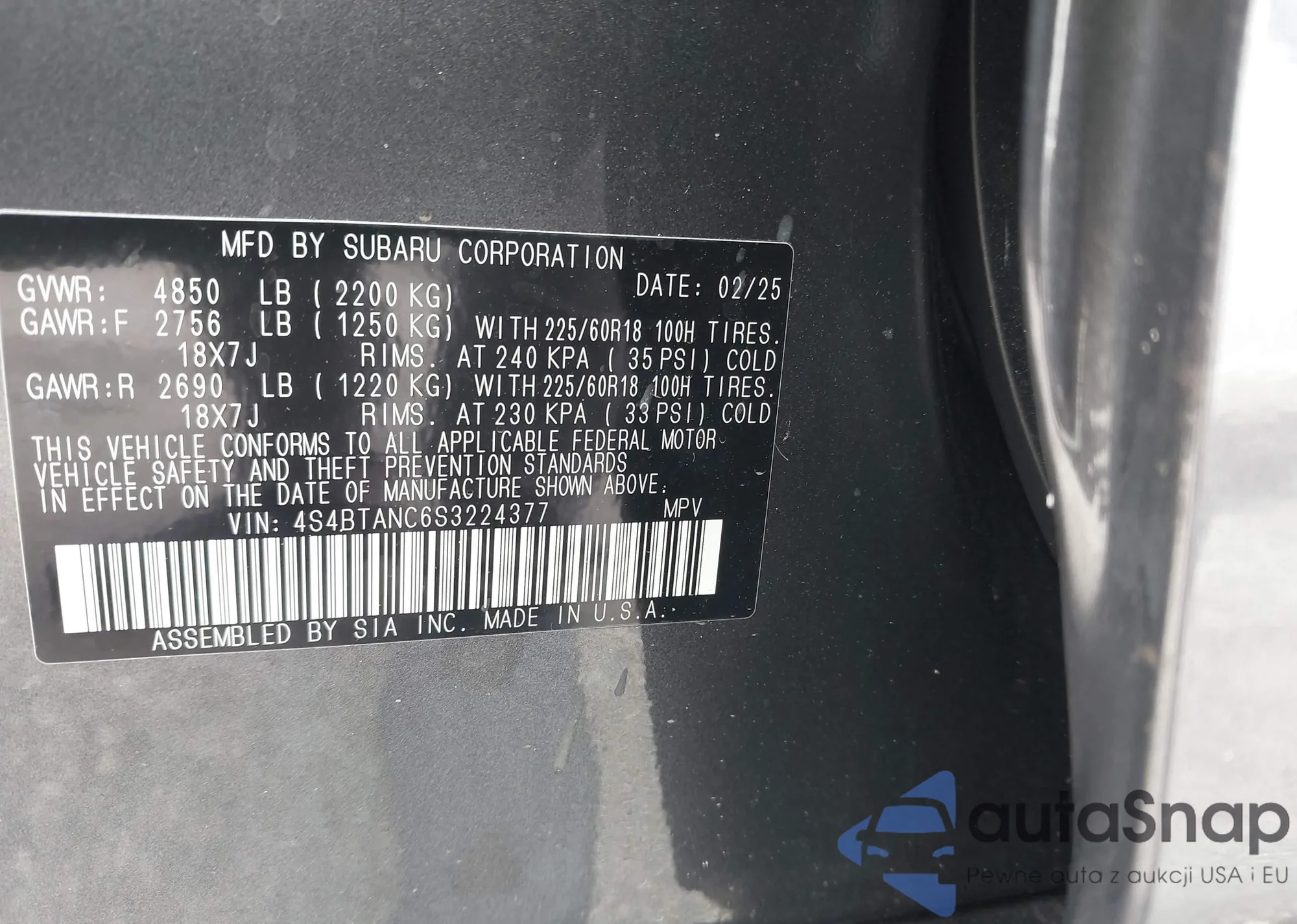 VIN: 4S4BTANC6S3224377