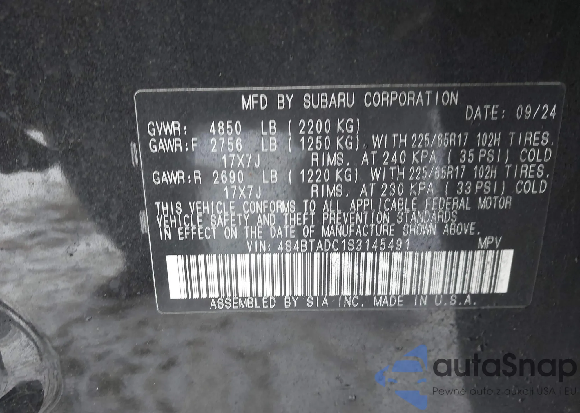 The car Subaru Outback 2025 (VIN 4S4BTADC1S3145491) has not been auctioned before. The documents are clean, and the mileage matches or is below the market average. Sold by an insurance company – we recommend purchase. Delivery to the port will take approx. 6–8 weeks.