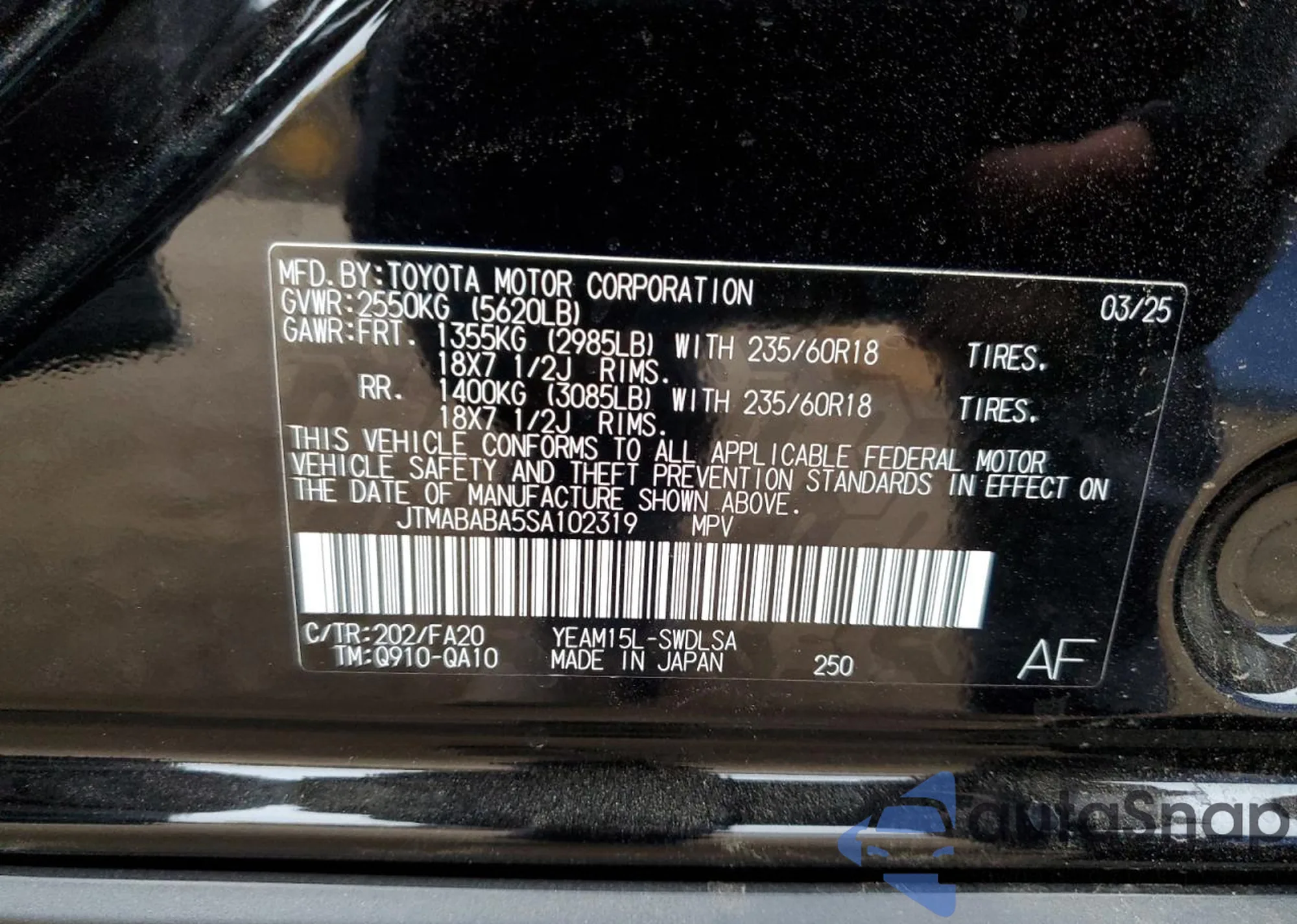 VIN: JTMABABA5SA102319