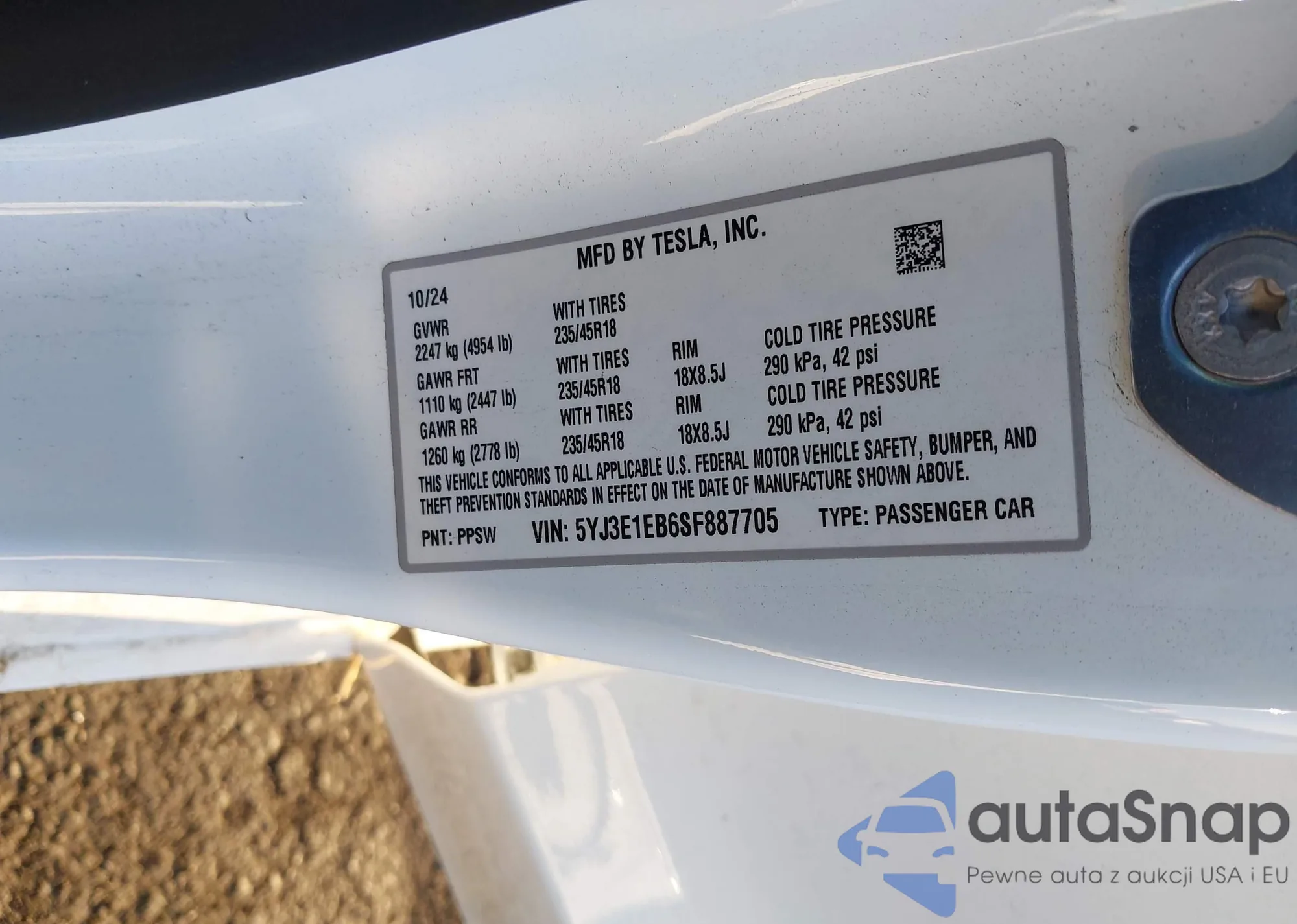 • VIN: 5YJ3E1EB6SF887705