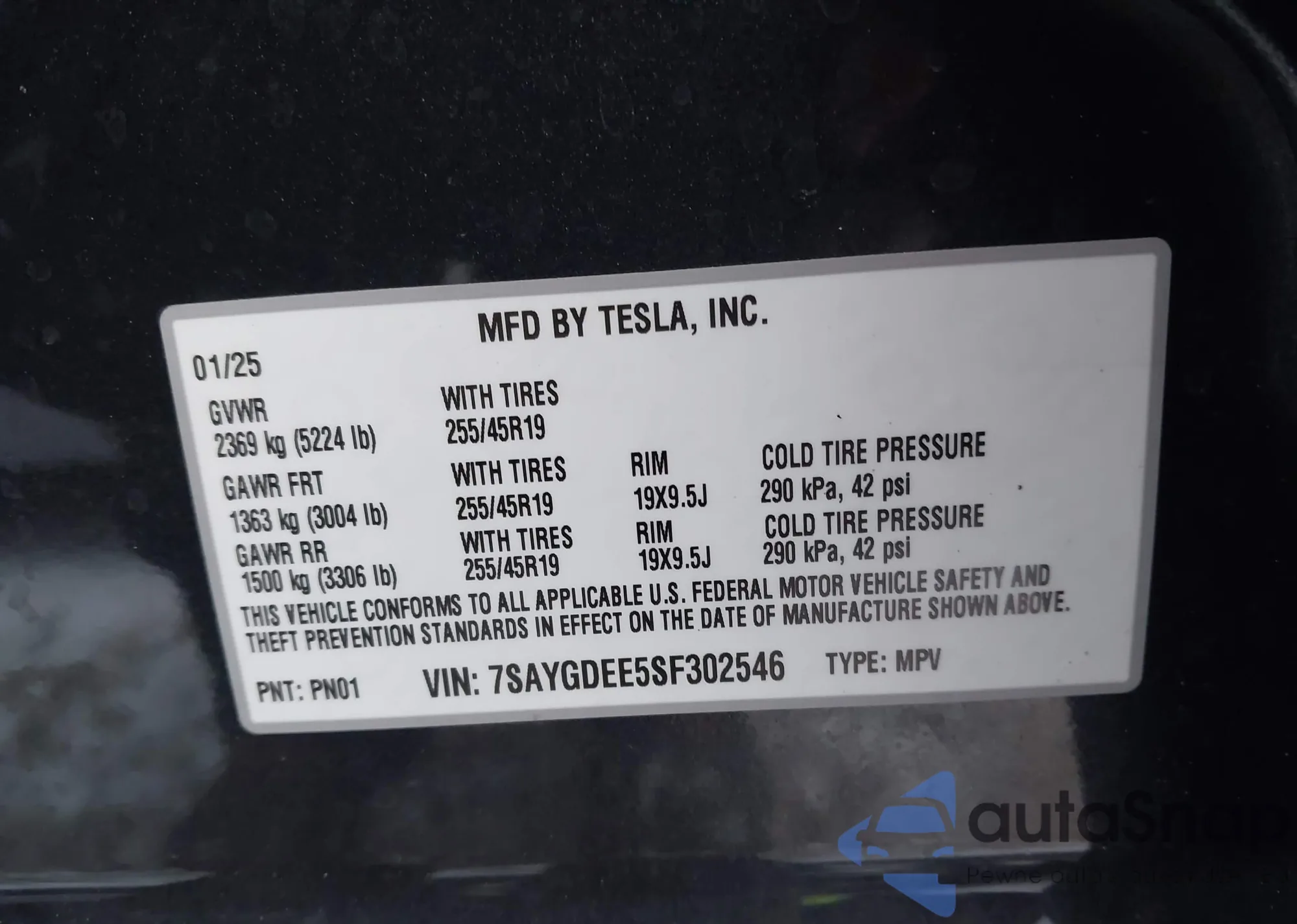VIN: 7SAYGDEE5SF302546