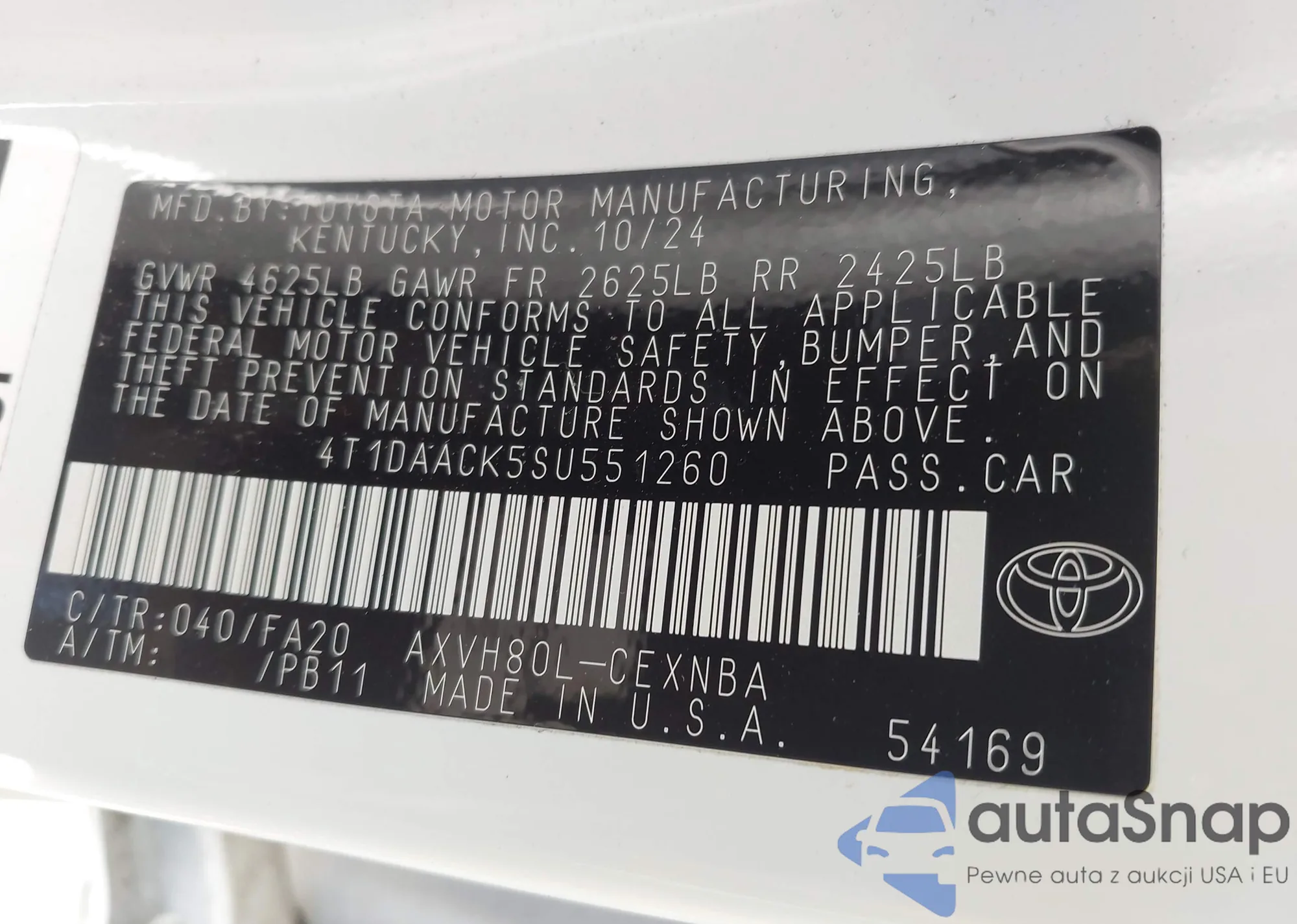 VIN: 4T1DAACK5SU551260