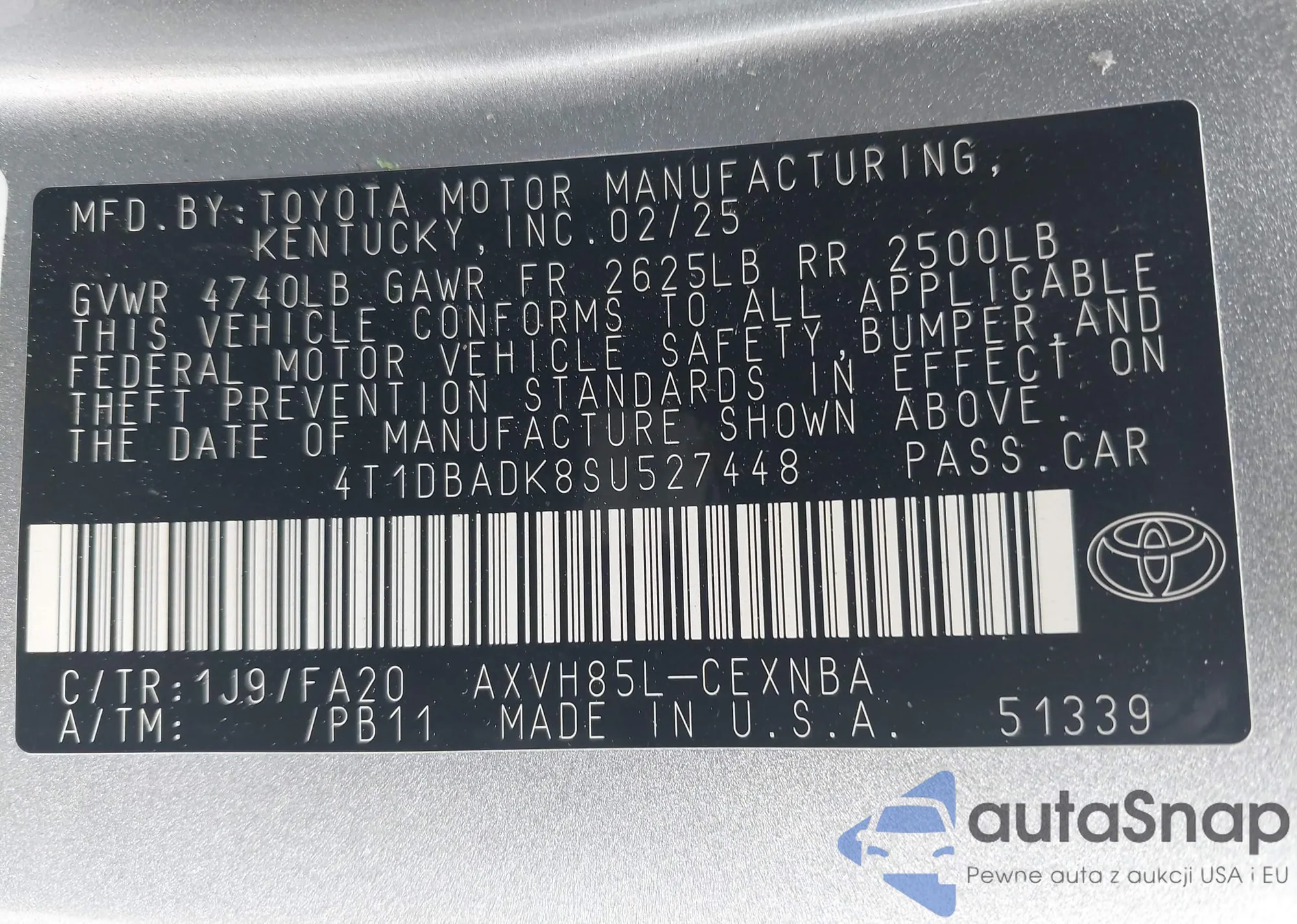 The car Toyota Camry 2025 (VIN 4T1DBADK8SU527448) is sold by an unverified seller. We recommend checking the Carfax report and confirming registration possibilities before purchase.