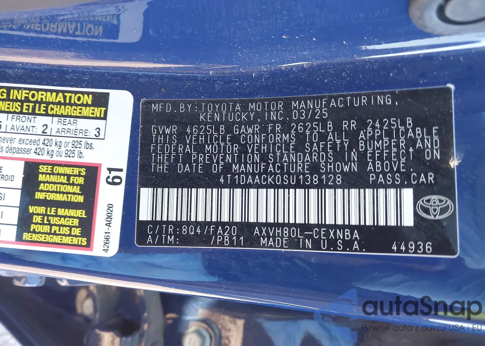 The car Toyota Camry 2025 (VIN 4T1DAACK0SU138128) is sold by an unverified seller. We recommend checking the Carfax report and confirming registration possibilities before purchase.