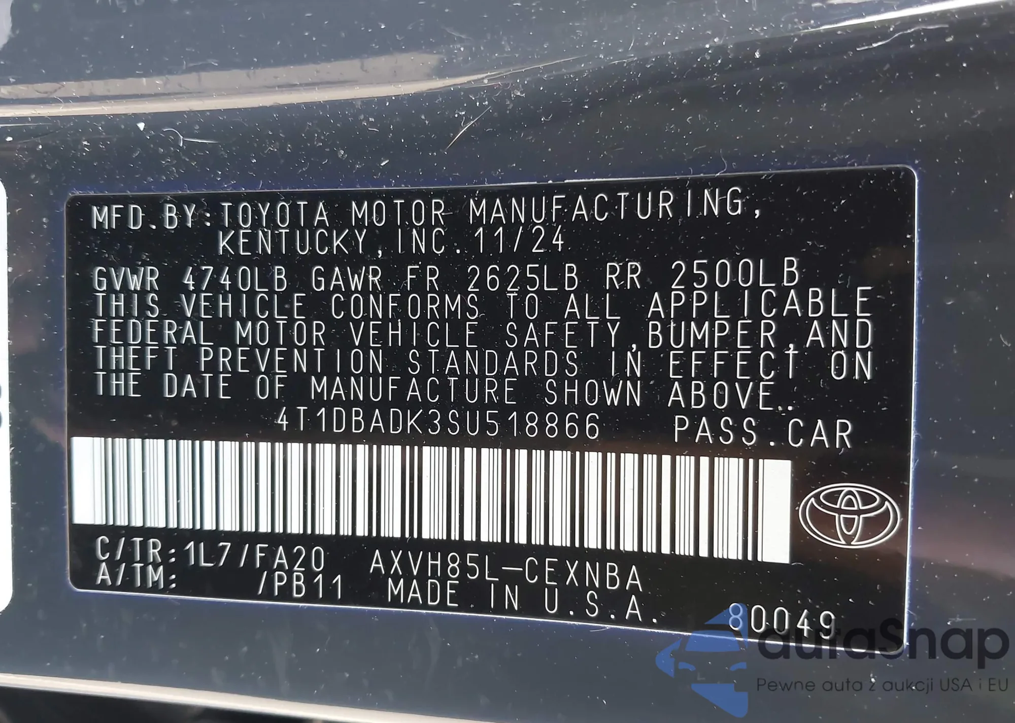 VIN: 4T1DBADK3SU518866