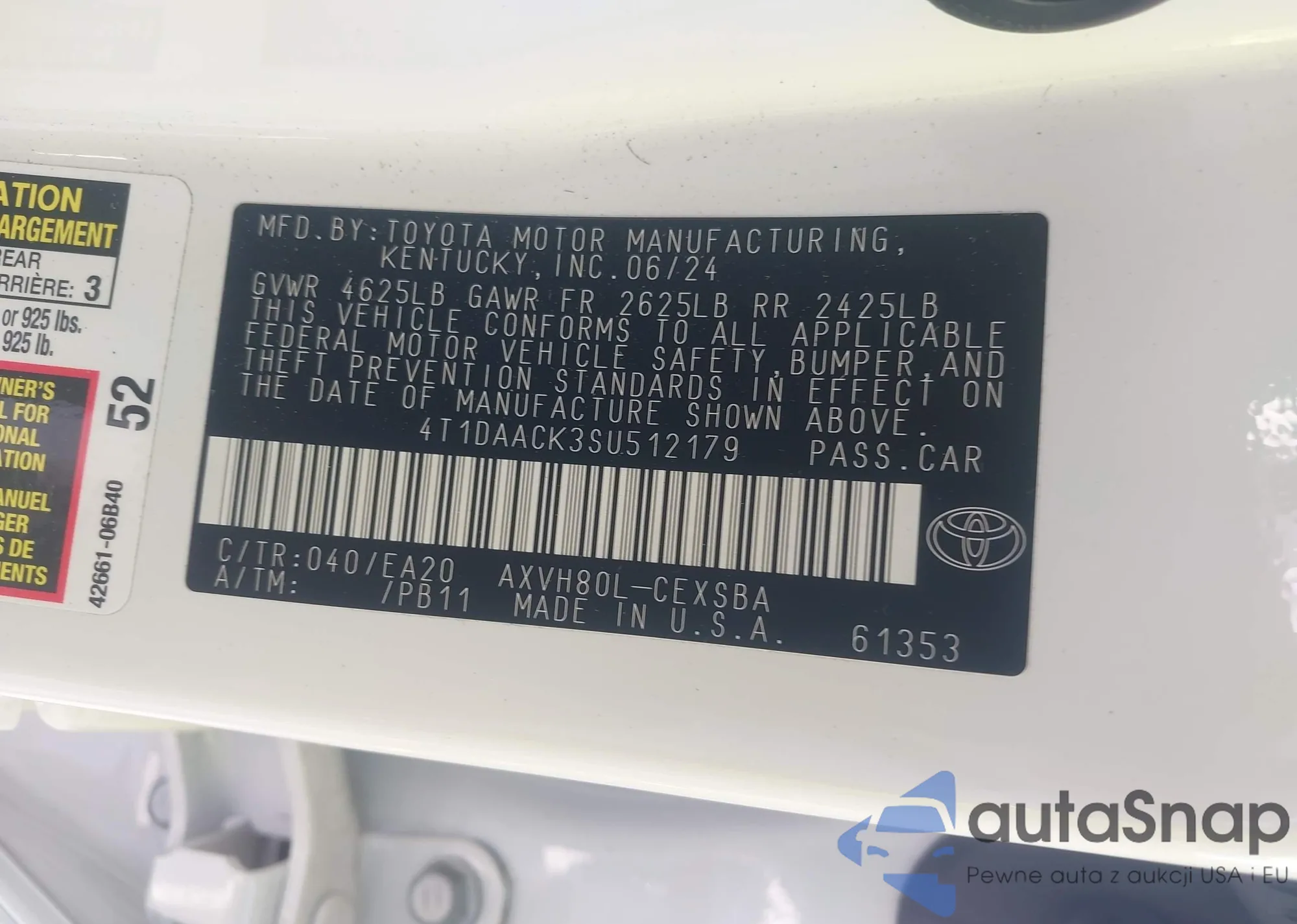 VIN: 4T1DAACK3SU512179