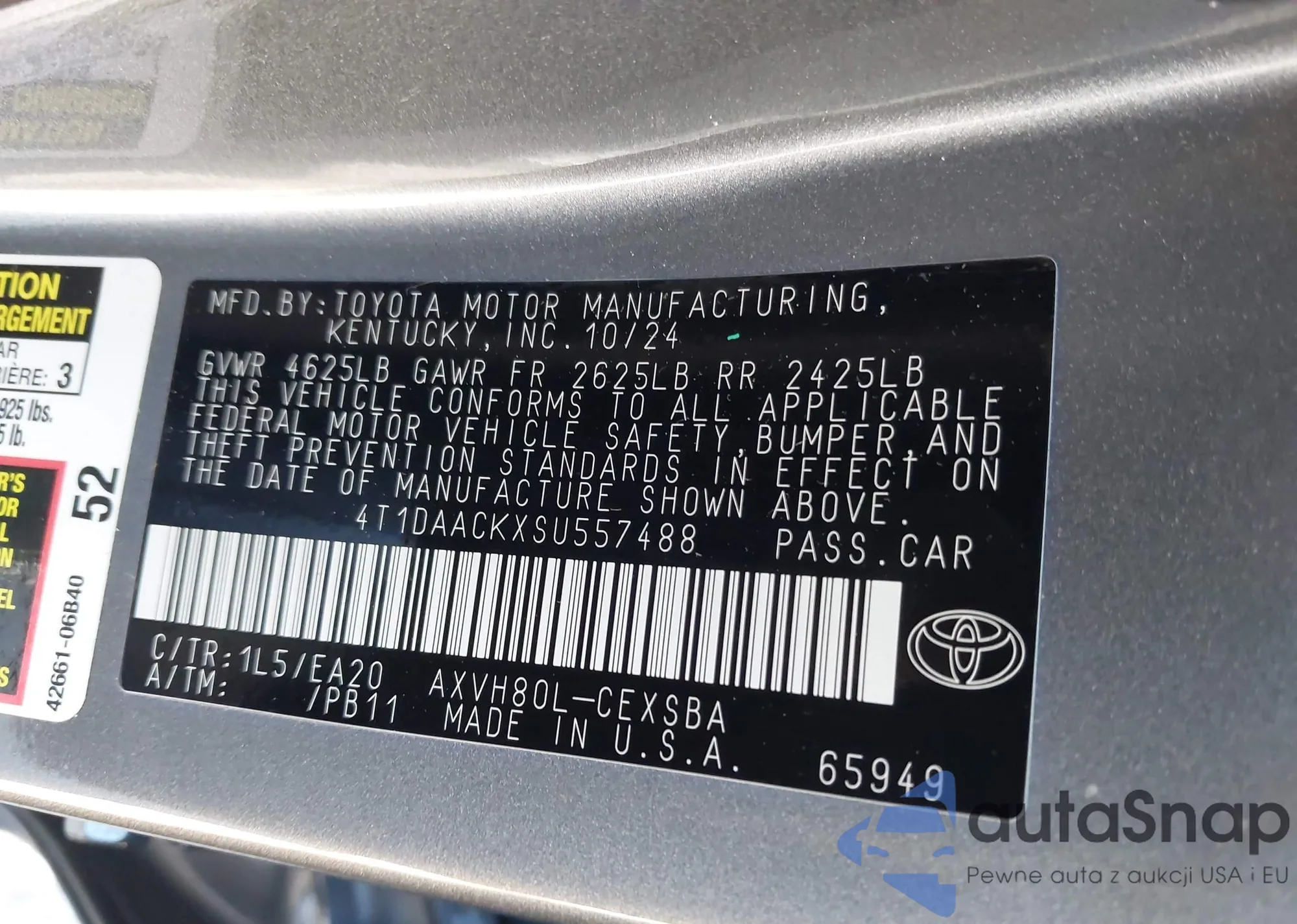 The car Toyota Camry 2025 (VIN 4T1DAACKXSU557488) has not been auctioned before. The documents are clean, and the mileage matches or is below the market average. Sold by an insurance company – we recommend purchase. Delivery to the port will take approx. 6–8 weeks.