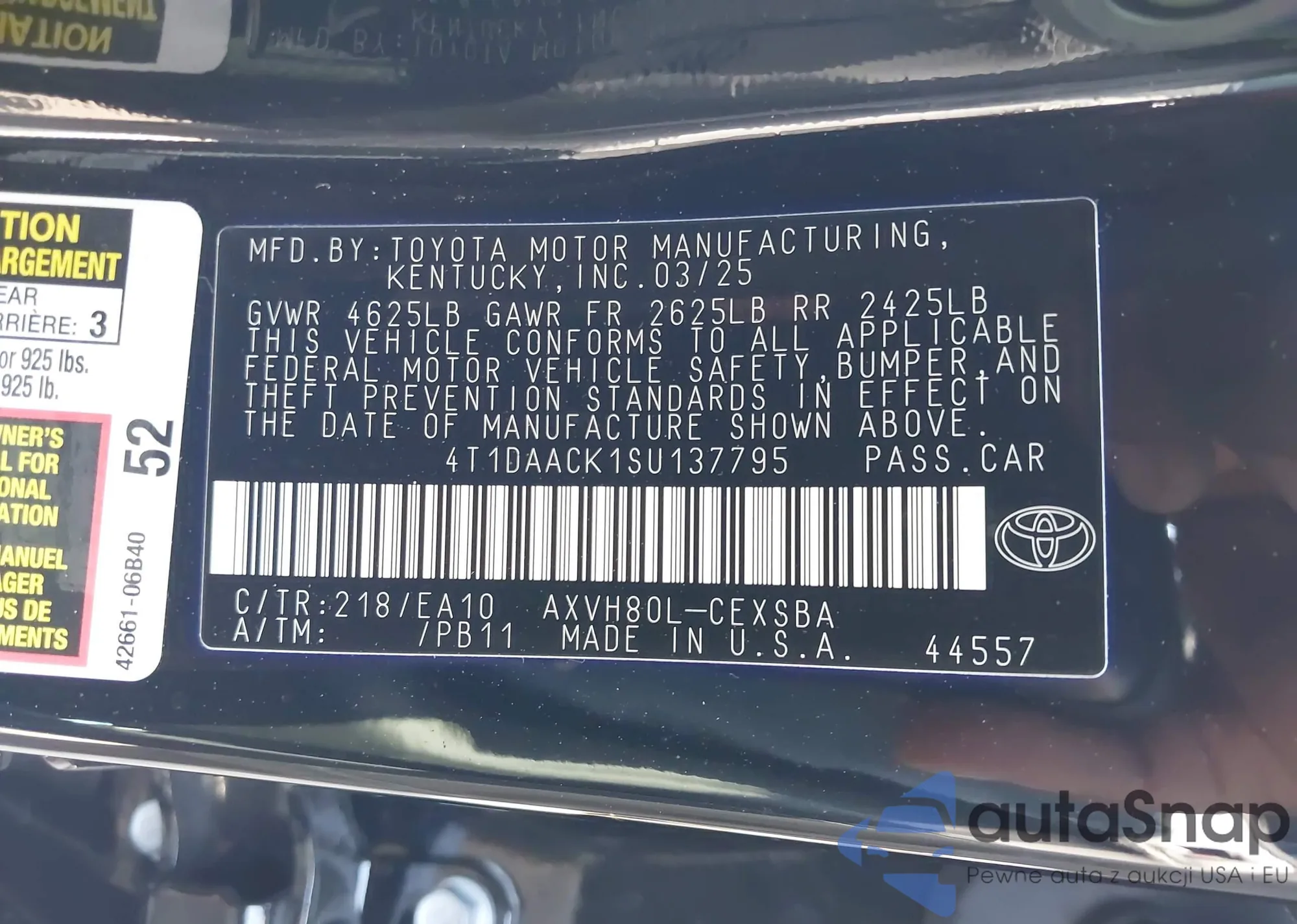 VIN: 4T1DAACK1SU137795
