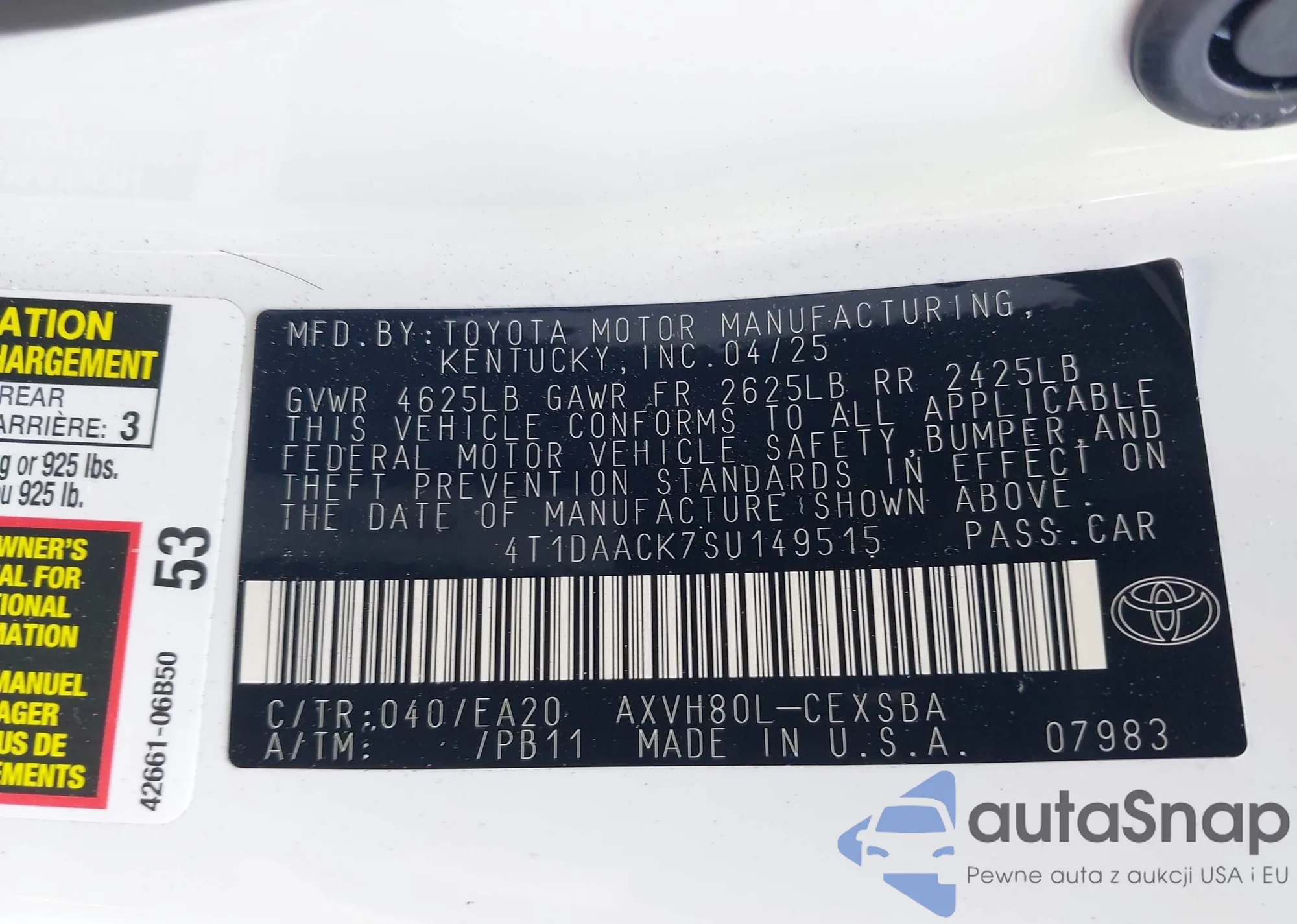 VIN: 4T1DAACK7SU149515