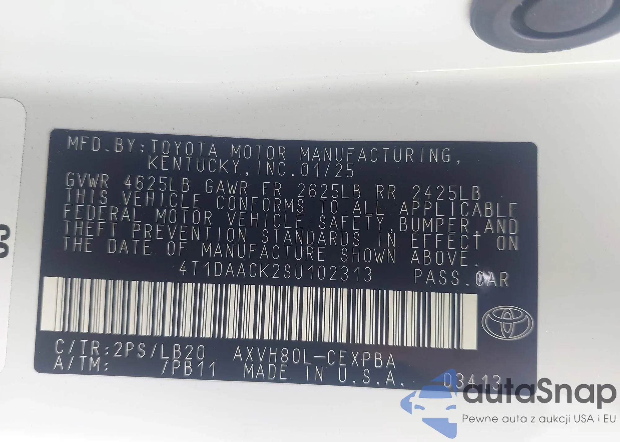 VIN: 4T1DAACK2SU102313