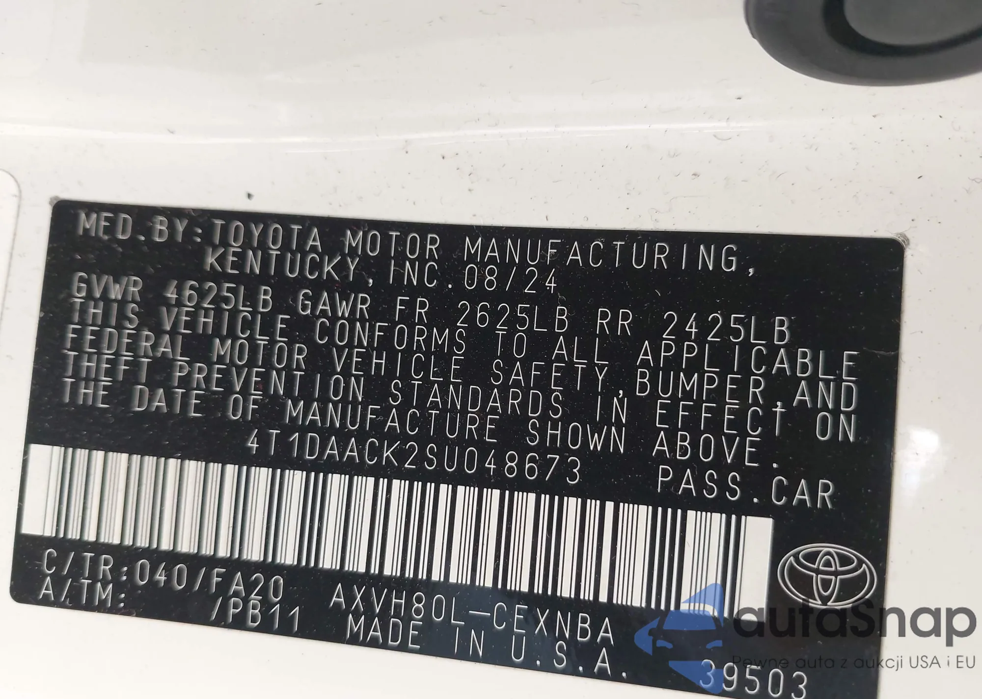 VIN: 4T1DAACK2SU048673