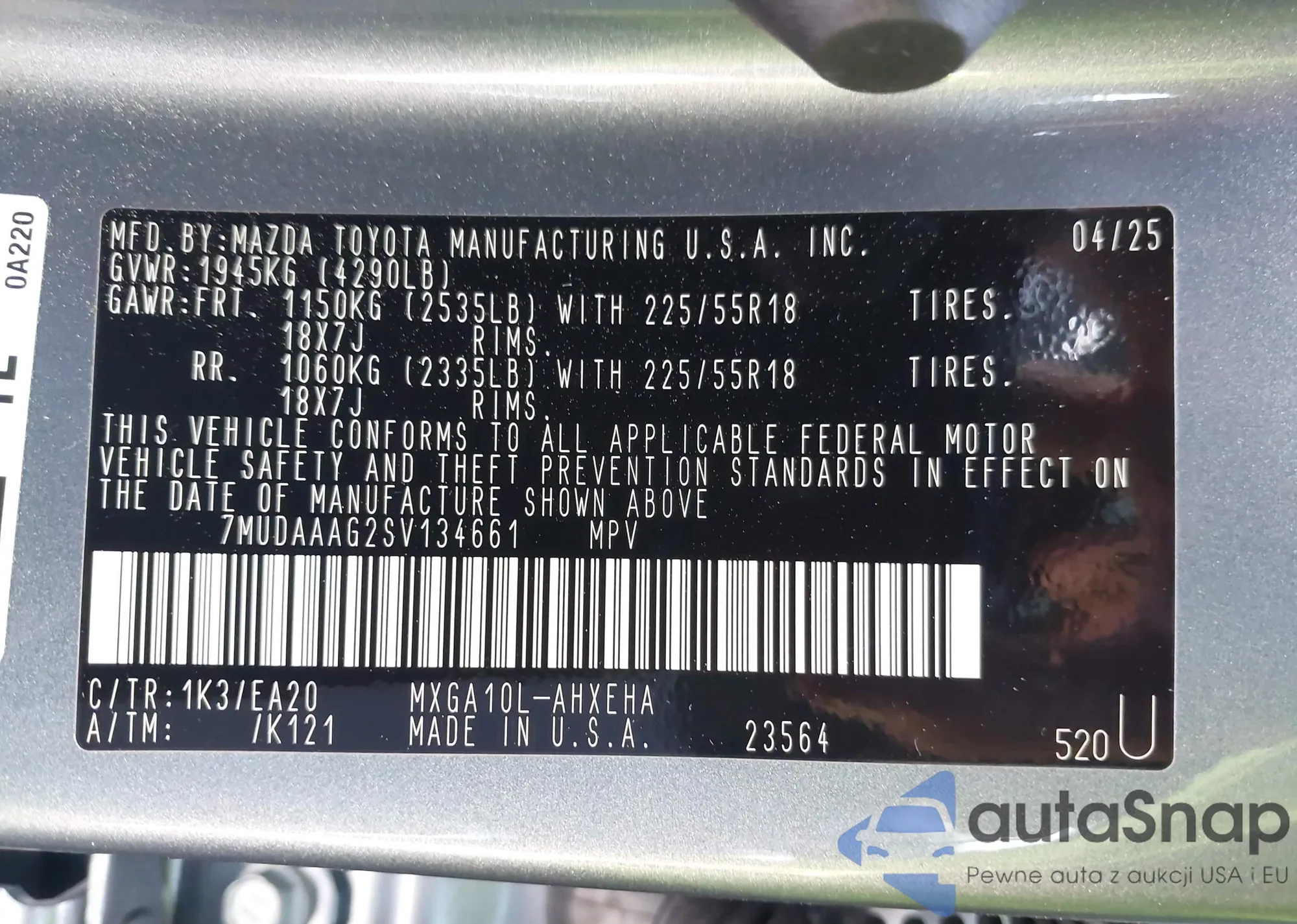 • VIN: 7MUDAAAG2SV134661