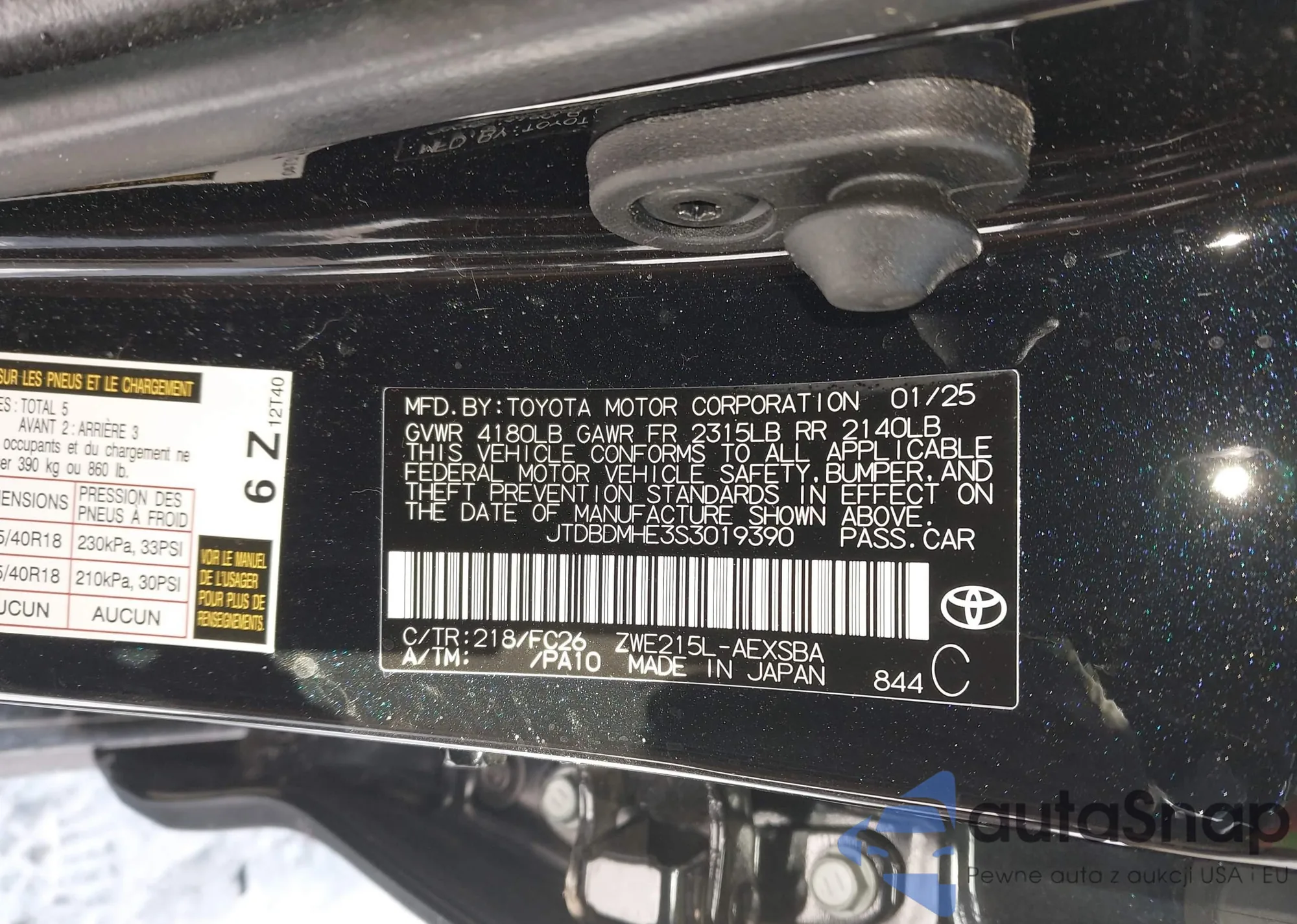 The car Toyota Corolla 2025 (VIN JTDBDMHE3S3019390) has not been auctioned before. The documents are clean, and the mileage matches or is below the market average. Sold by an insurance company – we recommend purchase. Delivery to the port will take approx. 6–8 weeks.