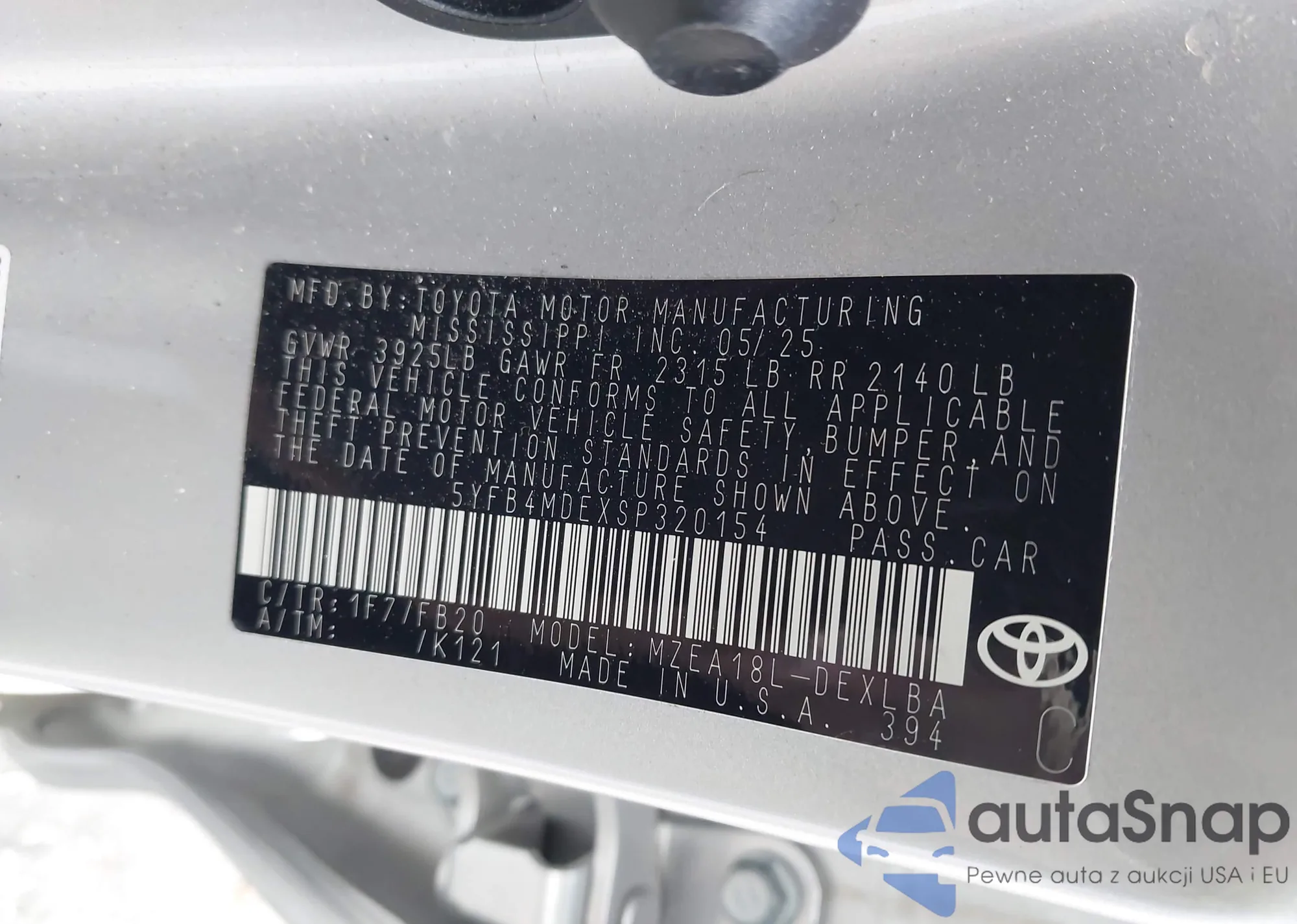 The car Toyota Corolla 2025 (VIN 5YFB4MDEXSP320154) is sold by an unverified seller. We recommend checking the Carfax report and confirming registration possibilities before purchase.
