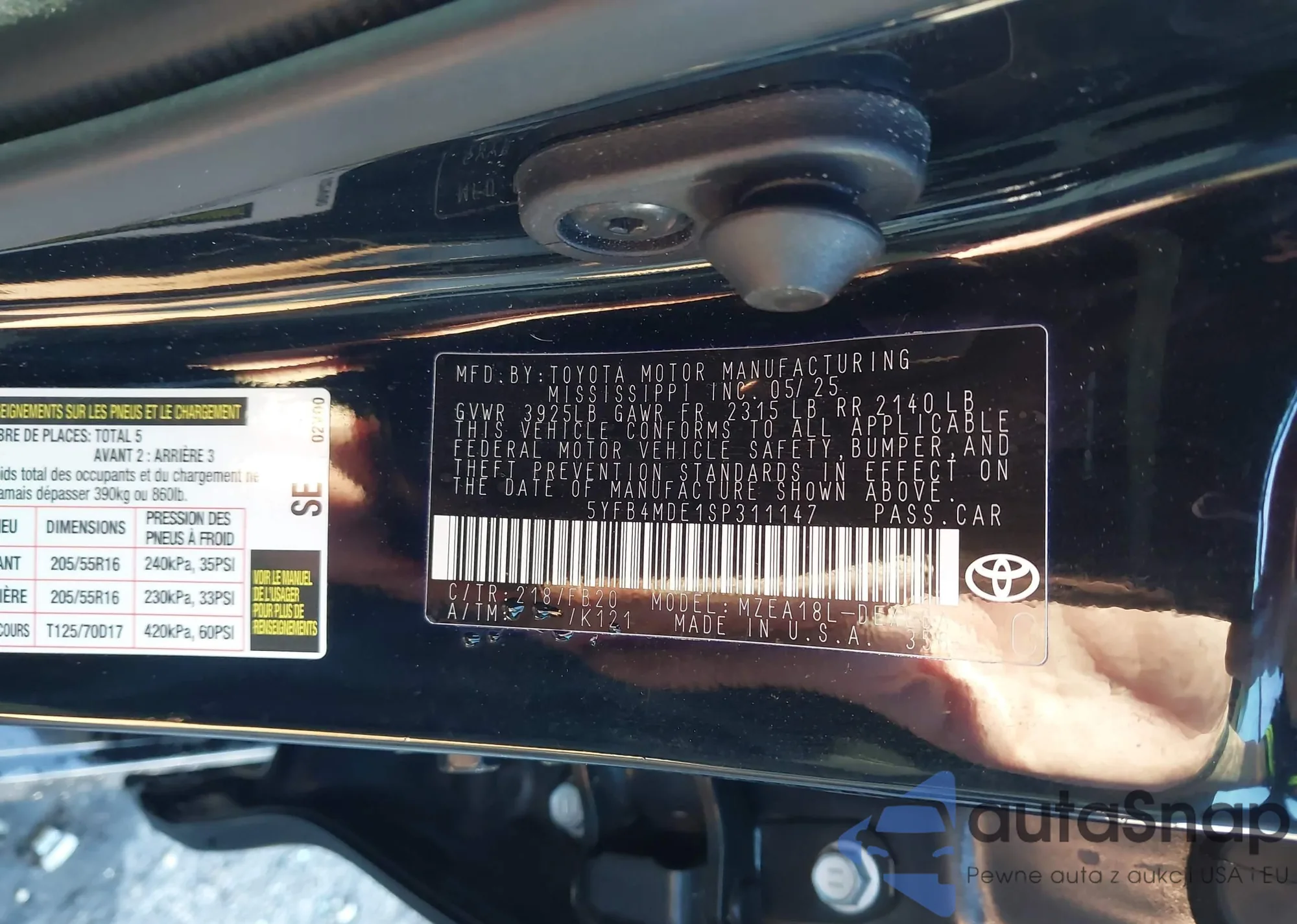 VIN: 5YFB4MDE1SP311147