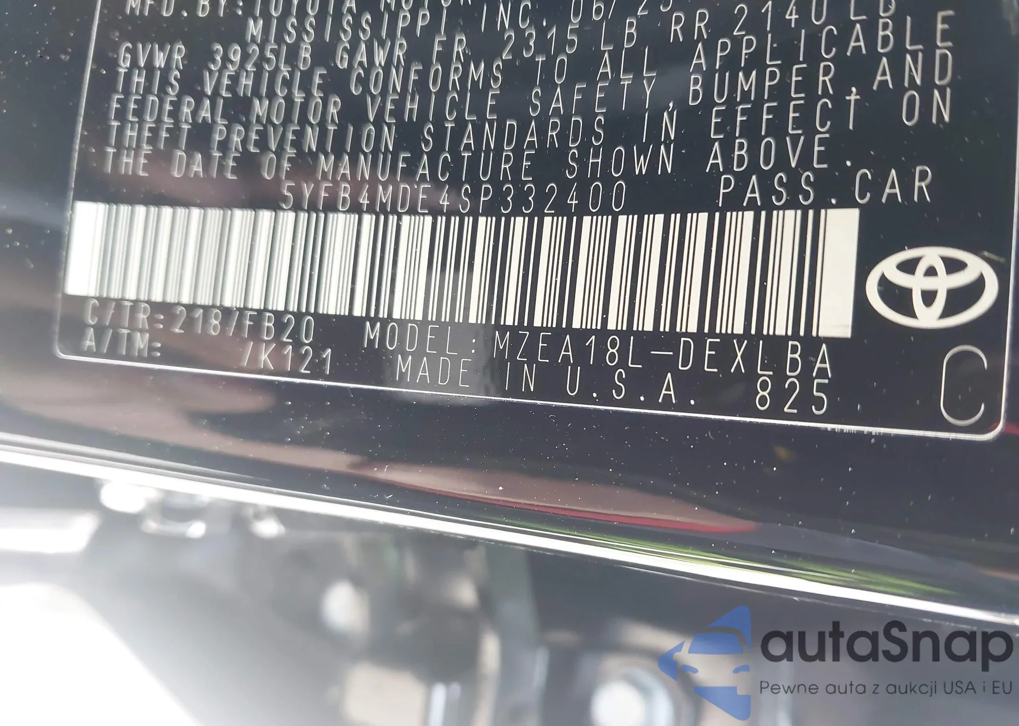 VIN: 5YFB4MDE4SP332400