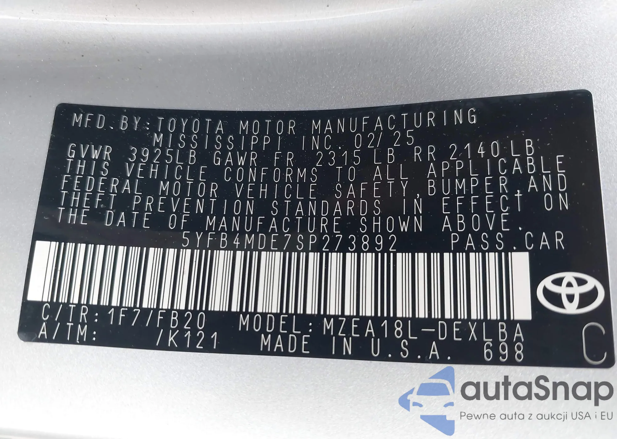VIN: 5YFB4MDE7SP273892
