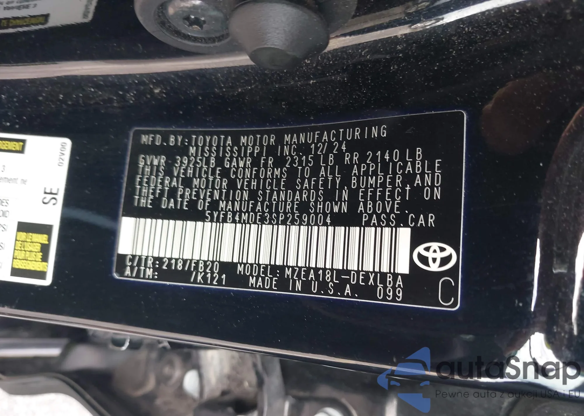 VIN: 5YFB4MDE3SP259004