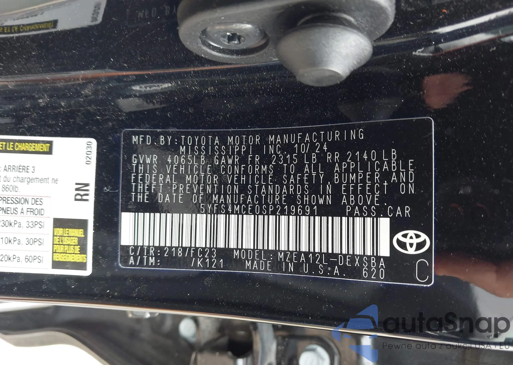 • VIN: 5YFS4MCE0SP219691