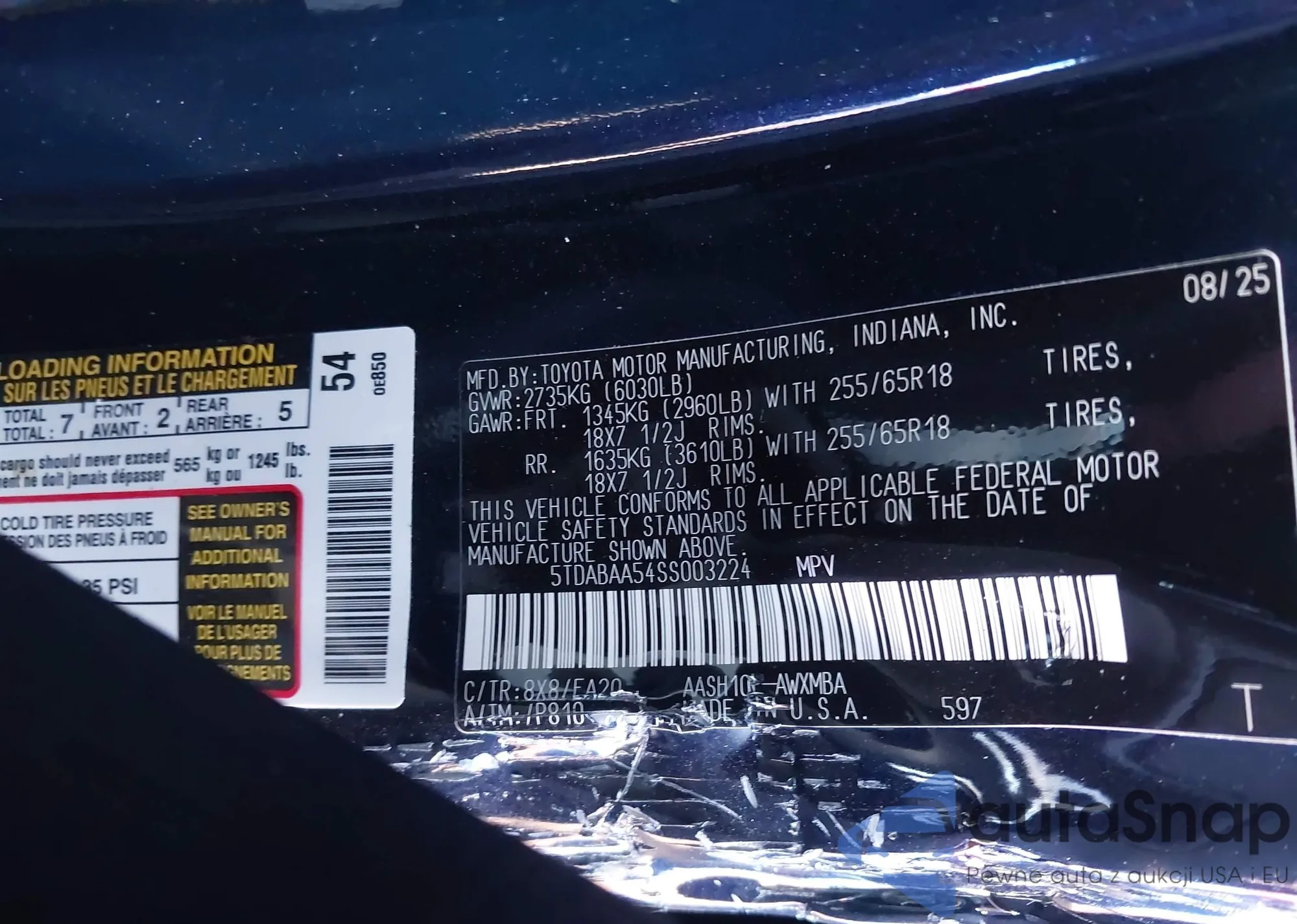 • VIN: 5TDABAA54SS003224