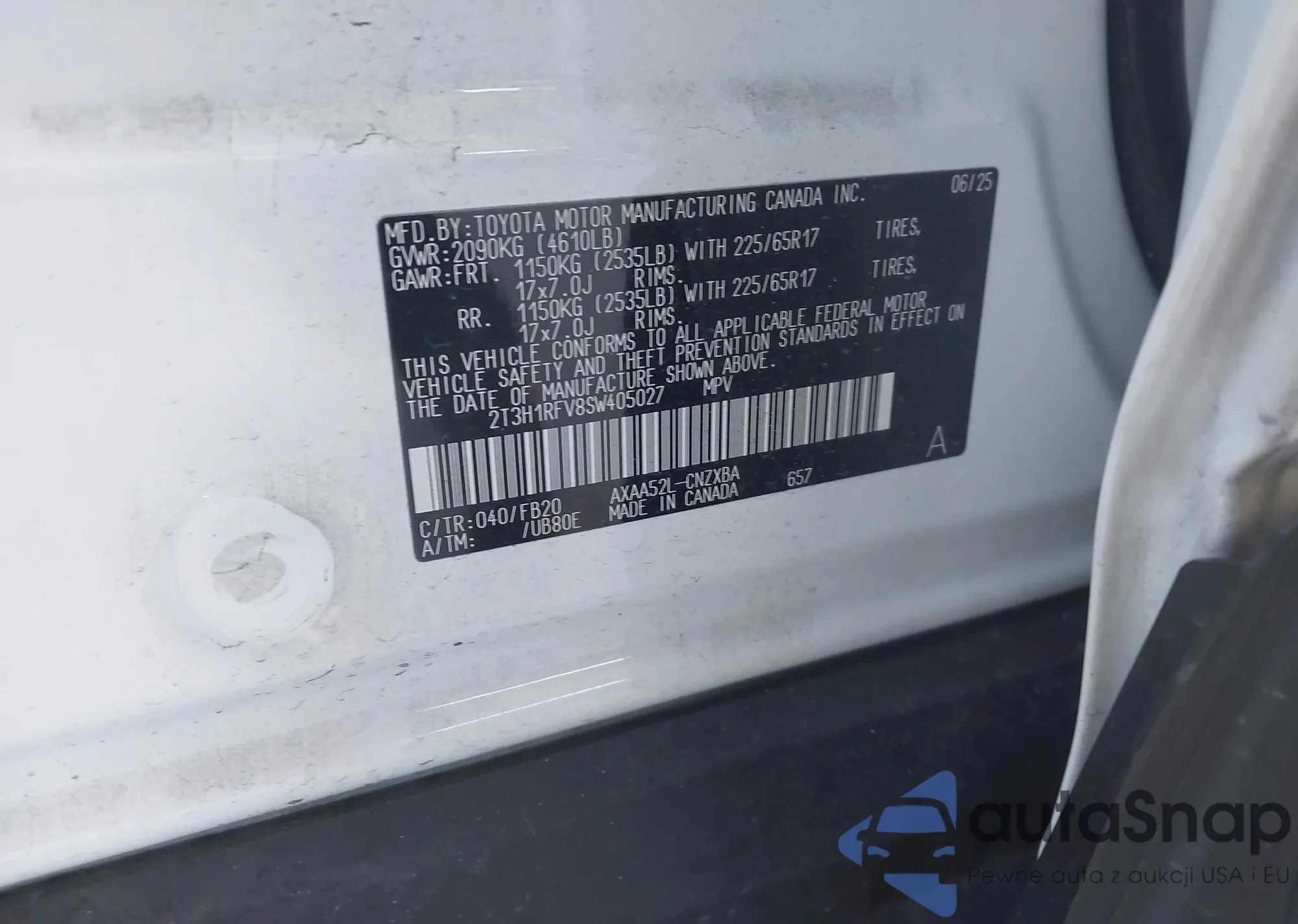 VIN: 2T3H1RFV8SW405027