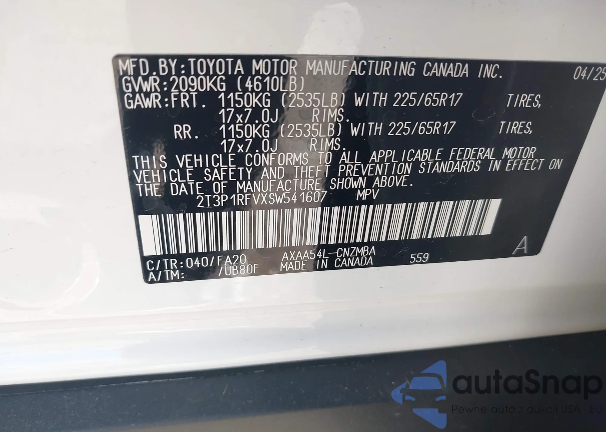 VIN: 2T3P1RFVXSW541607