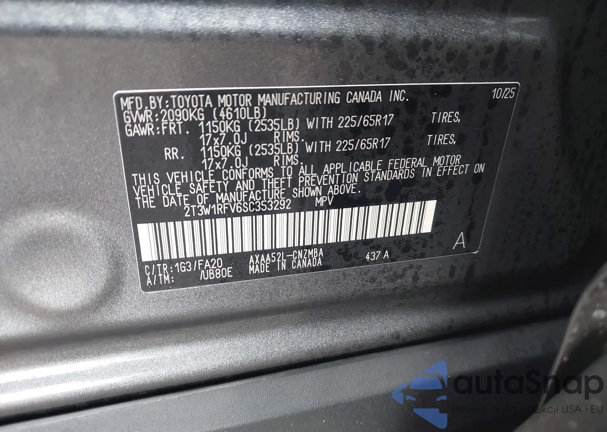 VIN: 2T3W1RFV6SC353292