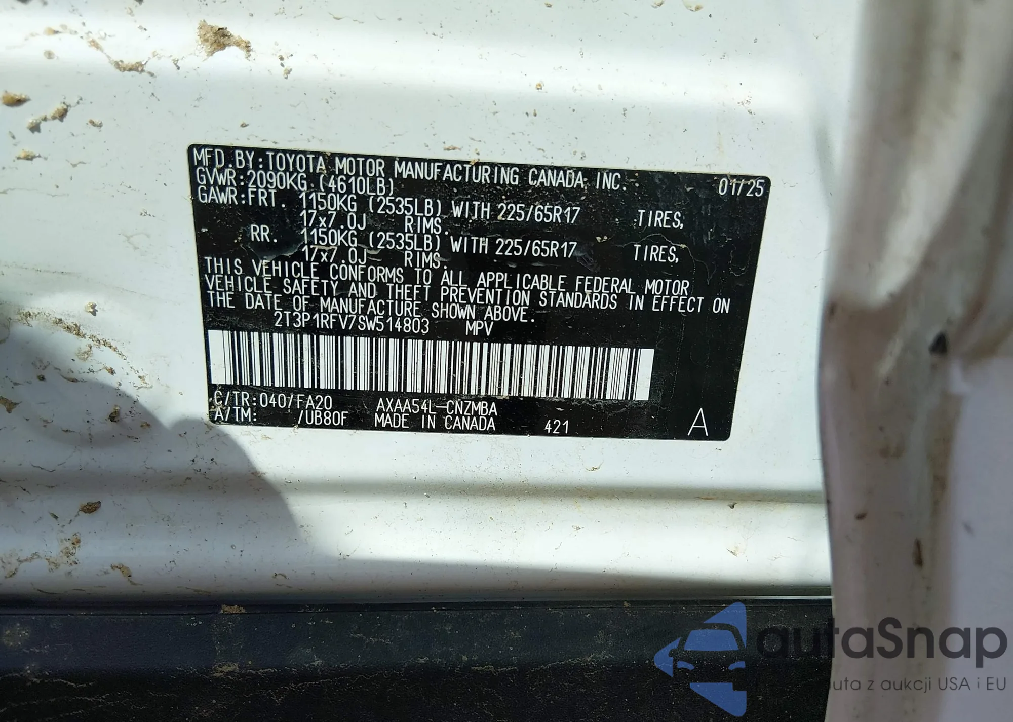 The car Toyota RAV 4 2025 (VIN 2T3P1RFV7SW514803) is sold by an unverified seller. We recommend checking the Carfax report and confirming registration possibilities before purchase.