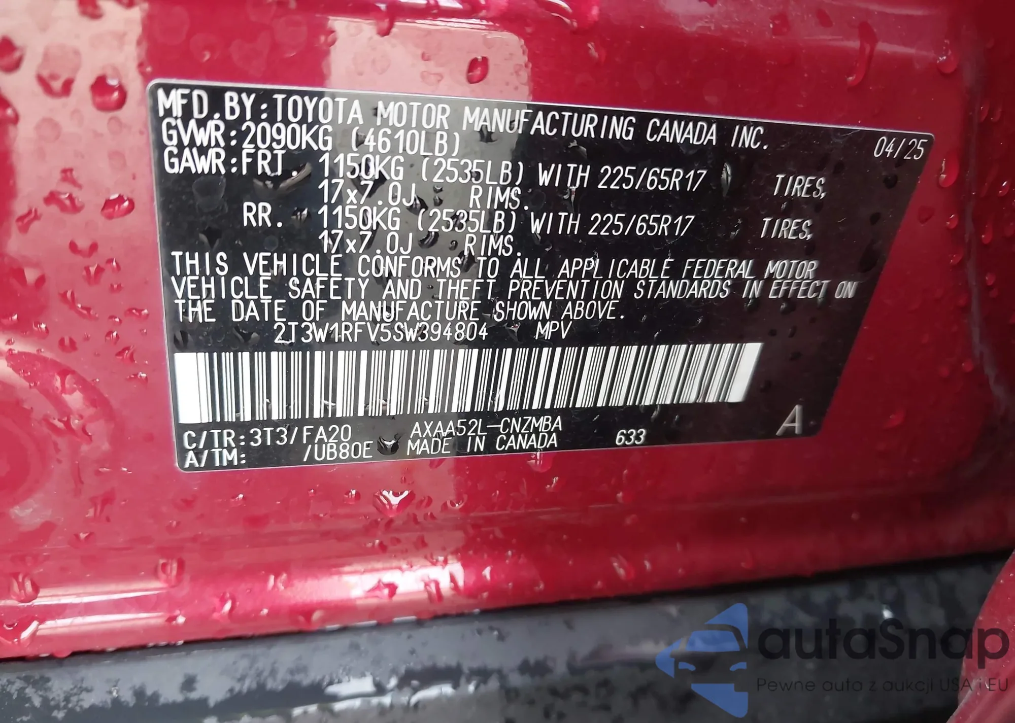 VIN: 2T3W1RFV5SW394804
