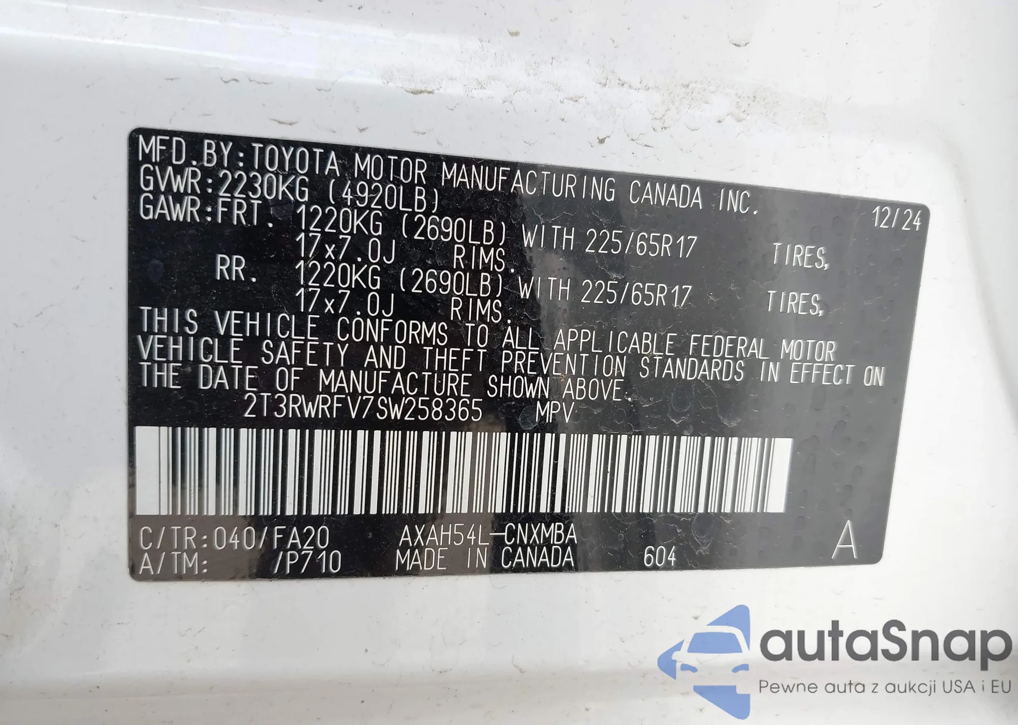 VIN: 2T3RWRFV7SW258365