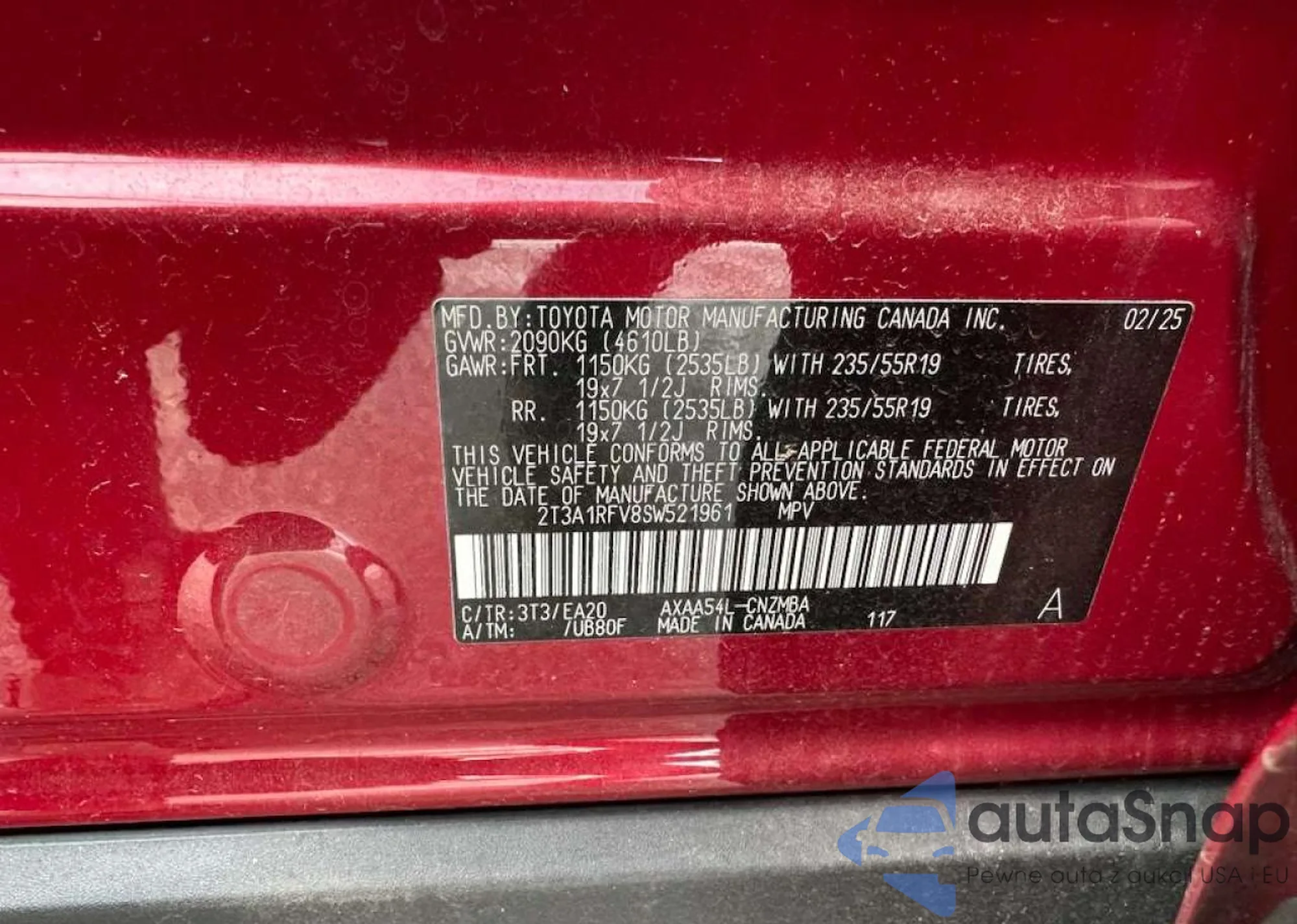 VIN: 2T3A1RFV8SW521961